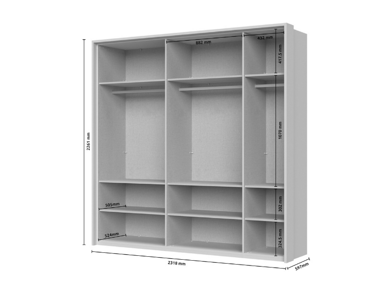Dulap cu 5 usi cu balamale OPERA 227x224x56cm casmir/ oglinda, manere maro
