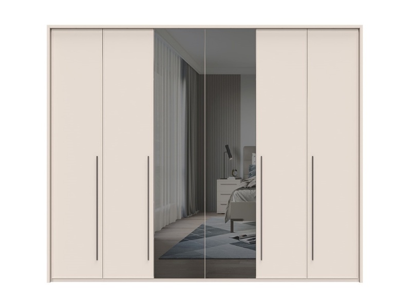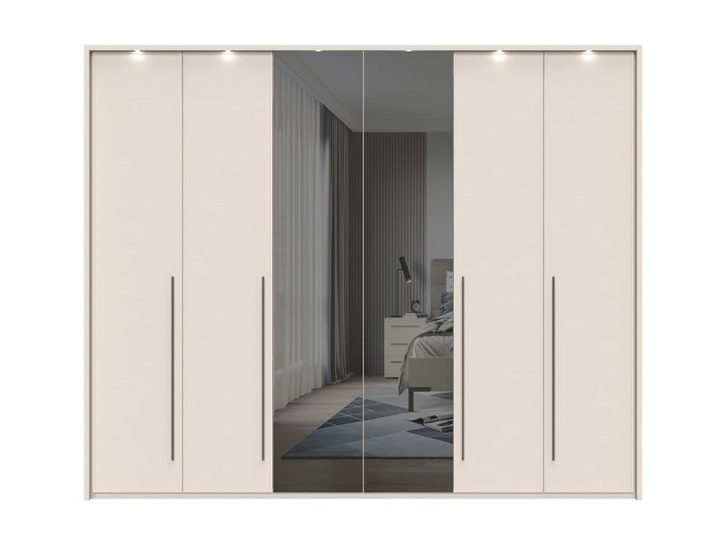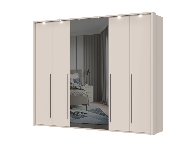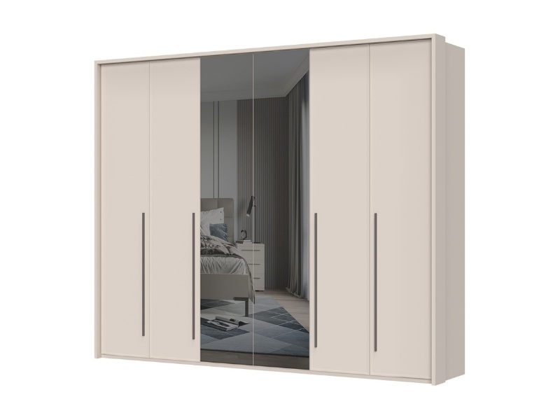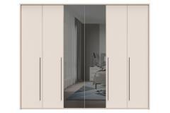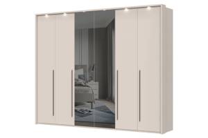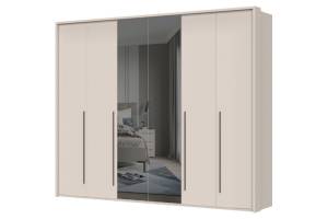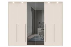 Dulap cu 6 usi cu balamale OPERA 272x224x56cm casmir/ oglinda, manere maro