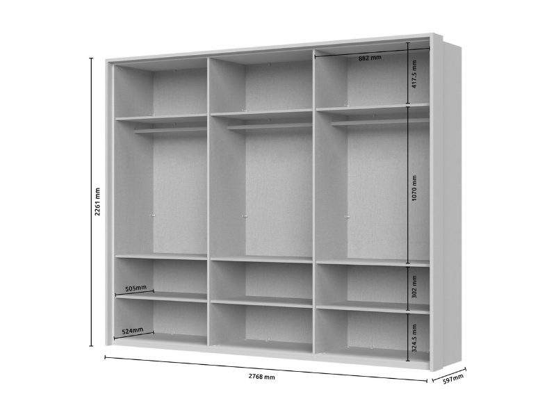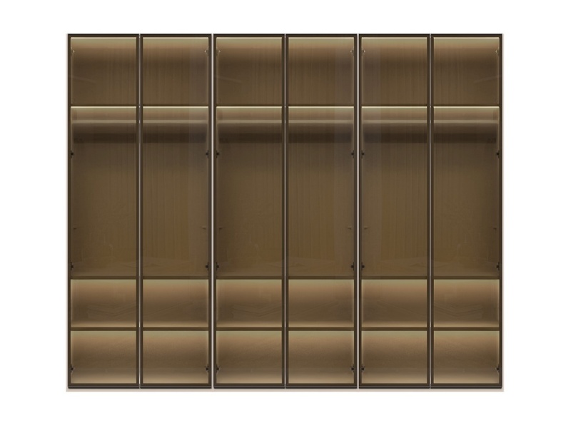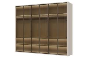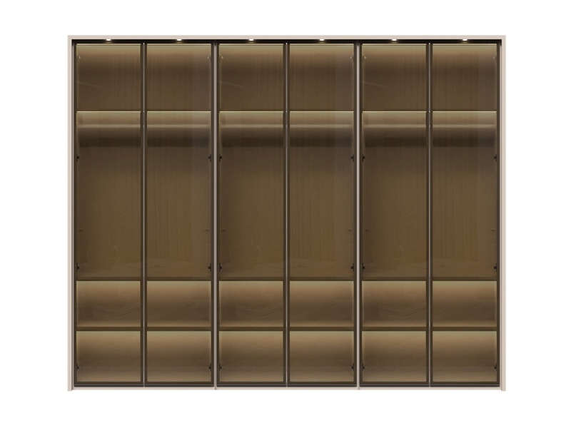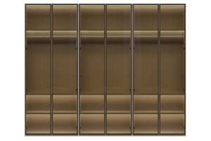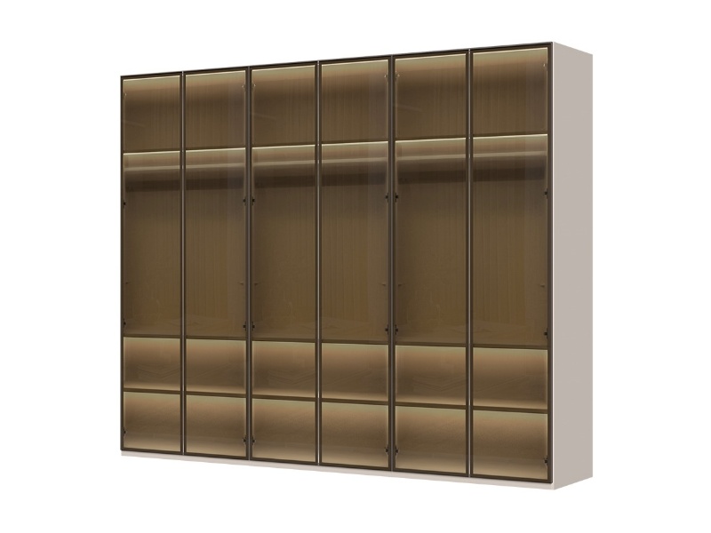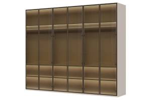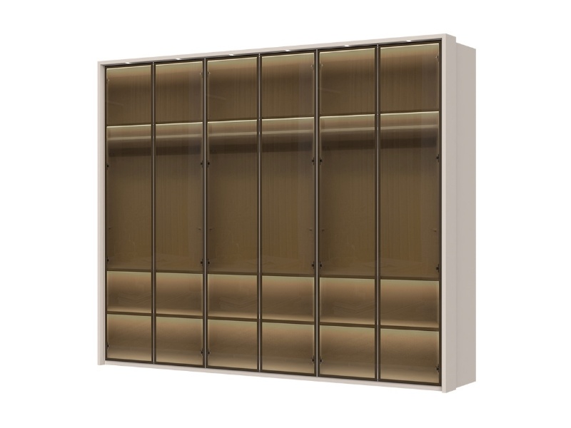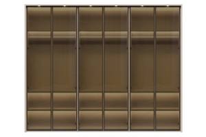 Dulap cu 6 usi cu balamale OPERA 272x224x56cm casmir/ sticla Parsol, manere maro