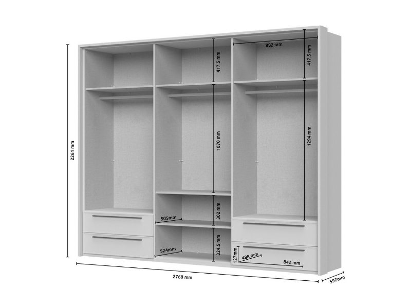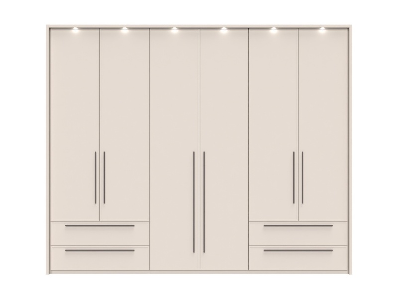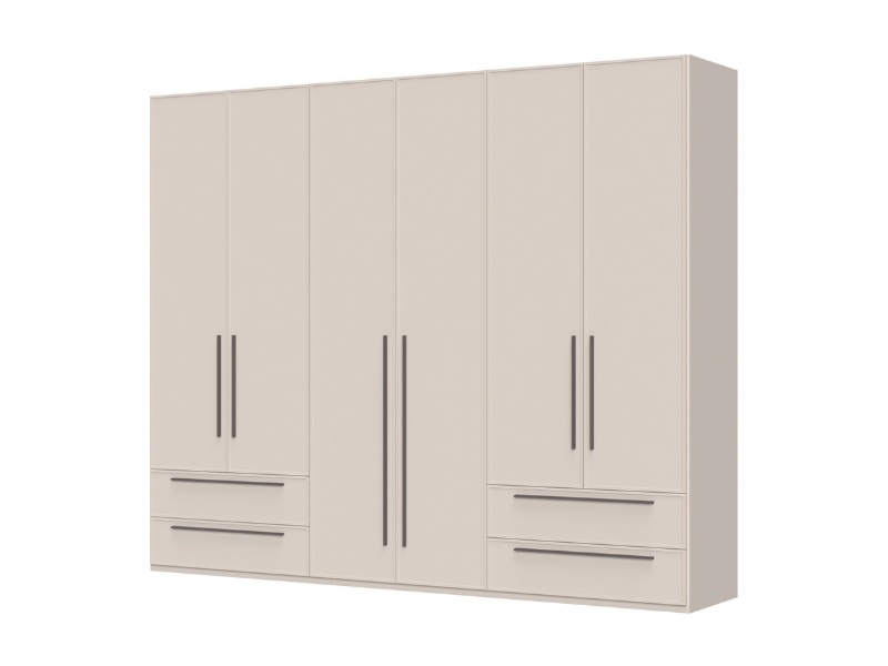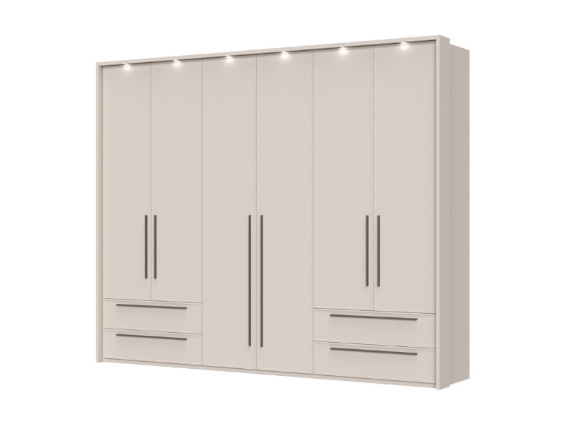 Dulap cu 6 usi si 4 sertare OPERA 272x224x56cm casmir, manere maro