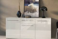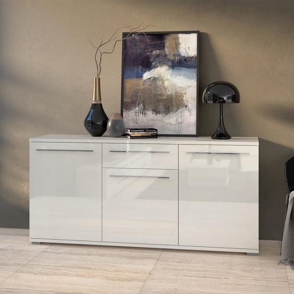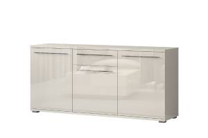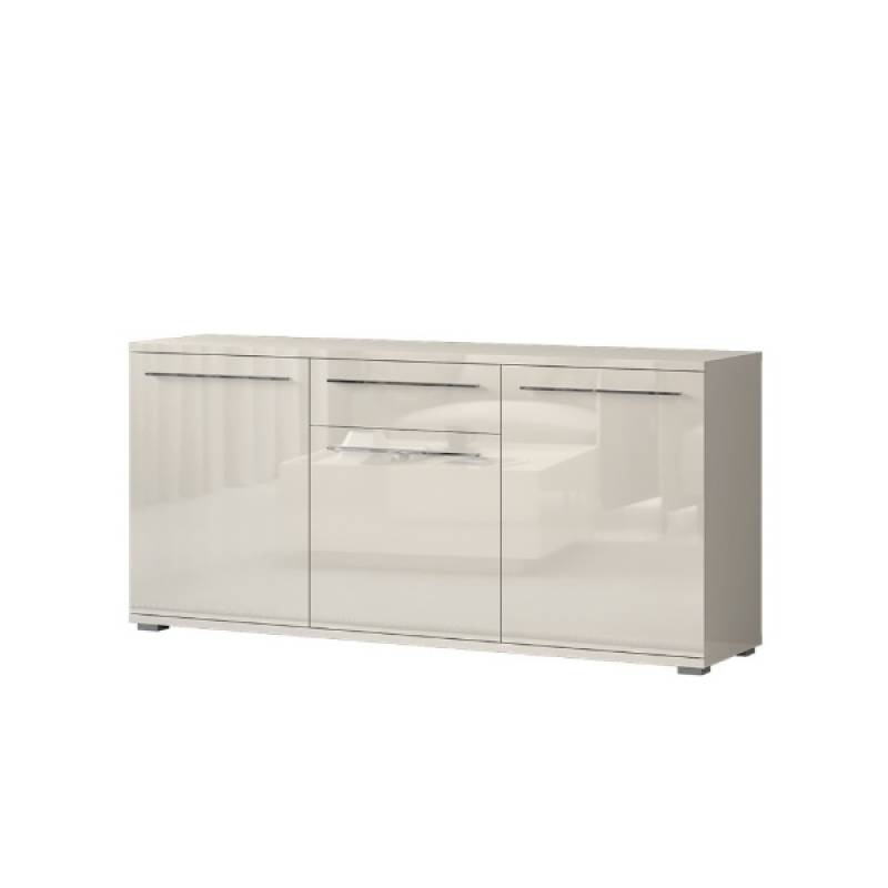 Comoda cu 3 usi si 1 sertar PIANO BEIGE 180x85x45cm bej lucios, manere si picioare crom