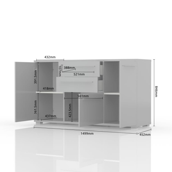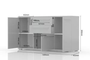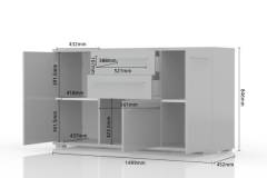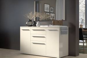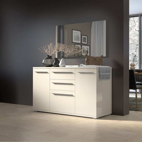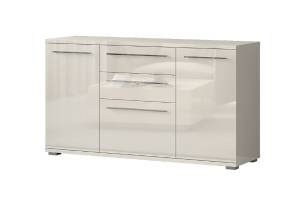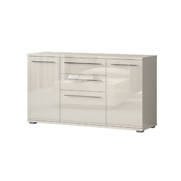 Comoda cu 3 usi si 2 sertare PIANO BEIGE 150x85x45cm bej lucios, manere crom