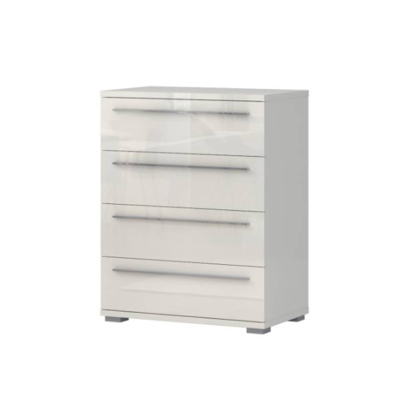 Comoda cu 4 sertare PIANO BEIGE 76x97x45cm bej lucios, manere crom