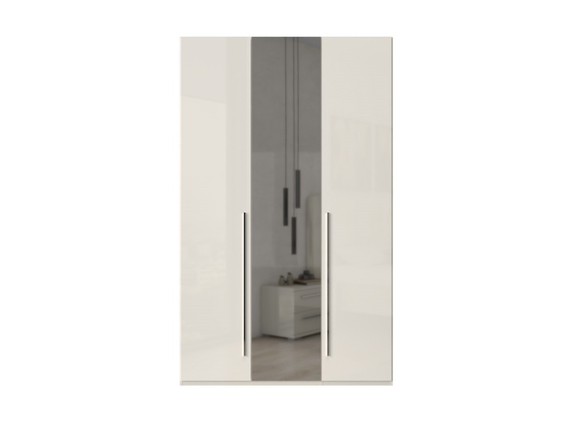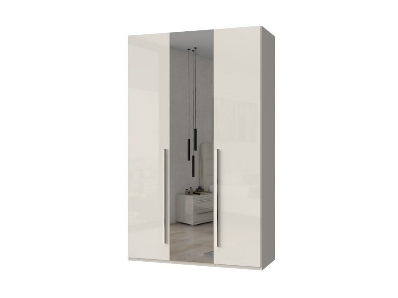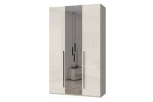 Dulap cu 3 usi cu balamale PIANO BEIGE 137x224x56cm bej lucios/ oglinda, manere crom