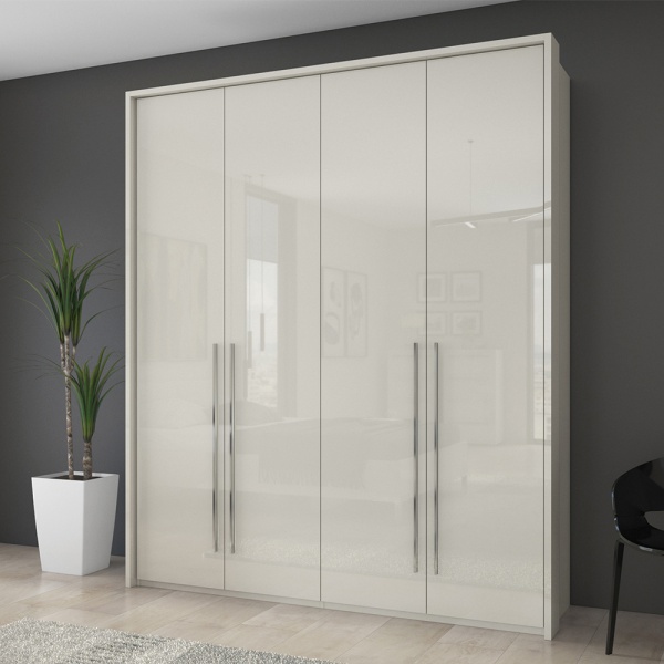 Dulap cu 4 usi cu balamale PIANO BEIGE 182x224x56cm bej lucios, manere crom