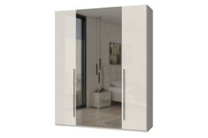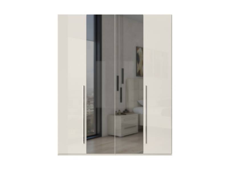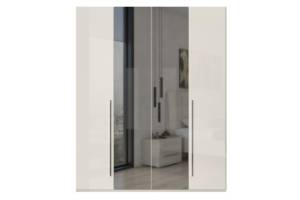 Dulap cu 4 usi cu balamale PIANO BEIGE 182x224x56cm bej lucios/ oglinda, manere crom