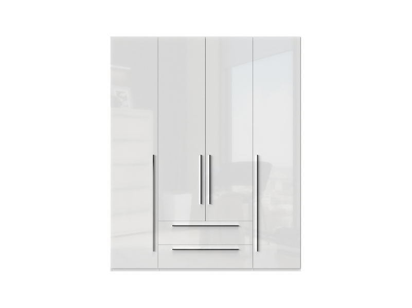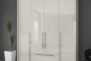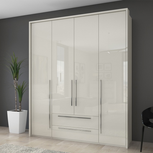 Dulap cu 4 usi si 2 sertare PIANO BEIGE 182x224x56cm bej lucios, manere crom