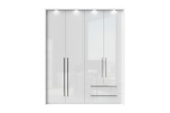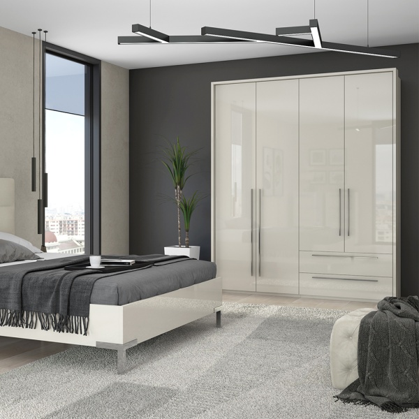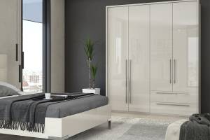 Dulap cu 4 usi si 2 sertare PIANO BEIGE 182x224x56cm bej lucios, manere crom