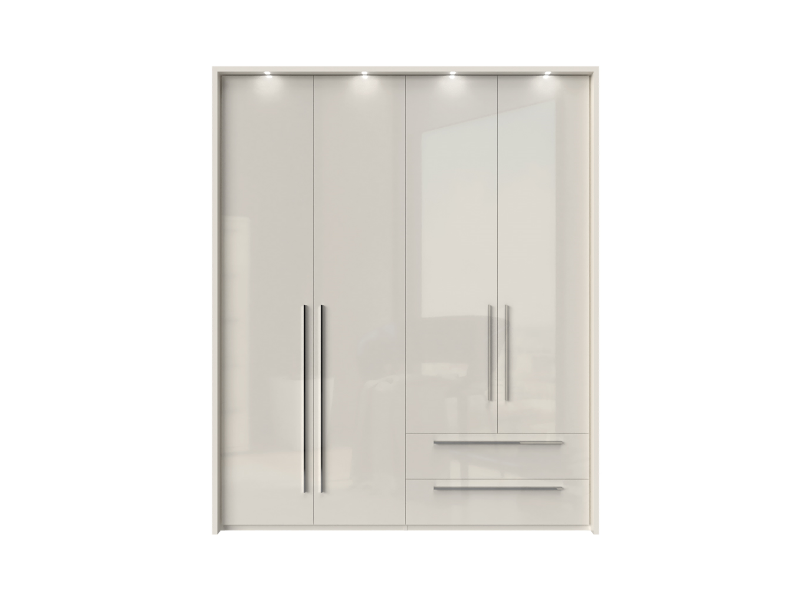 Dulap cu 4 usi cu balamale PIANO BEIGE 182x224x56cm bej lucios, manere crom