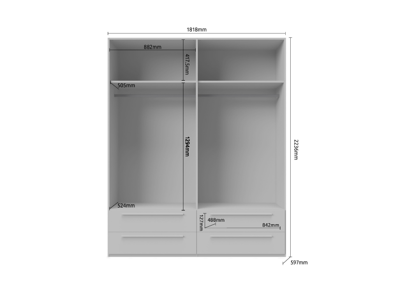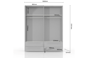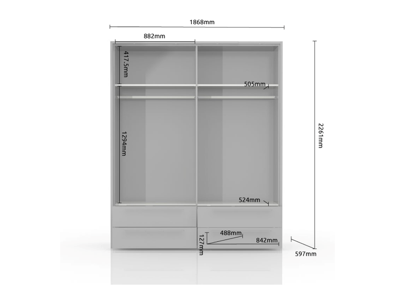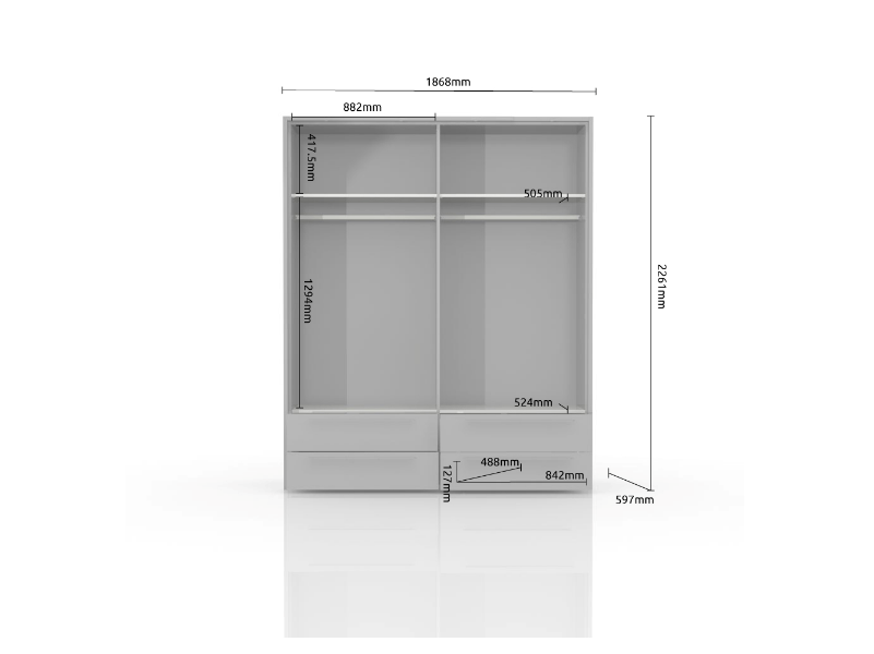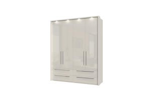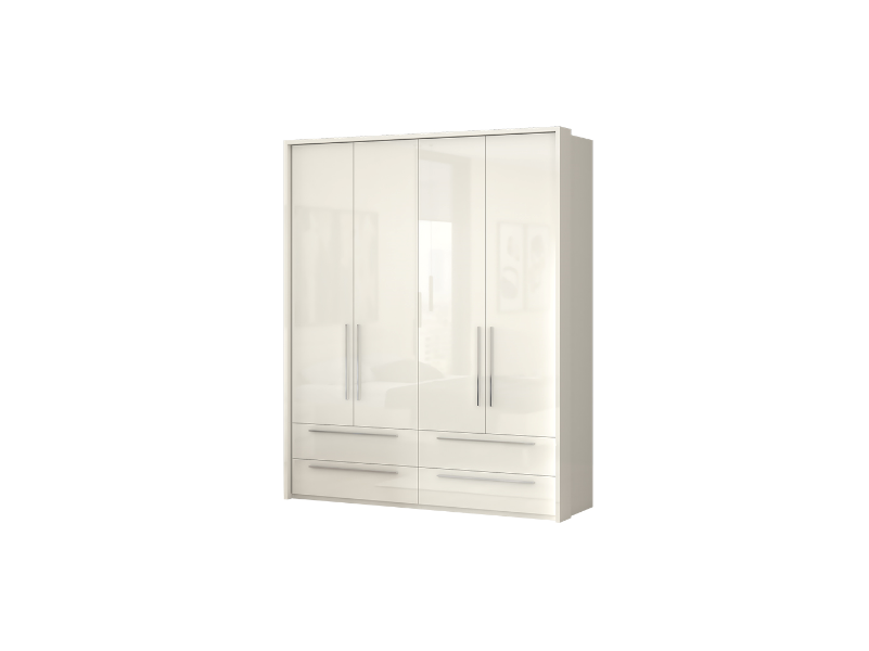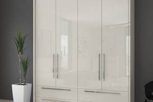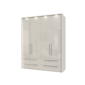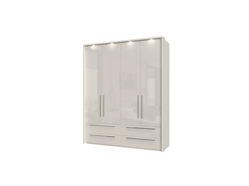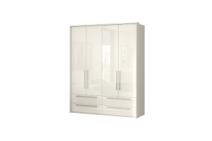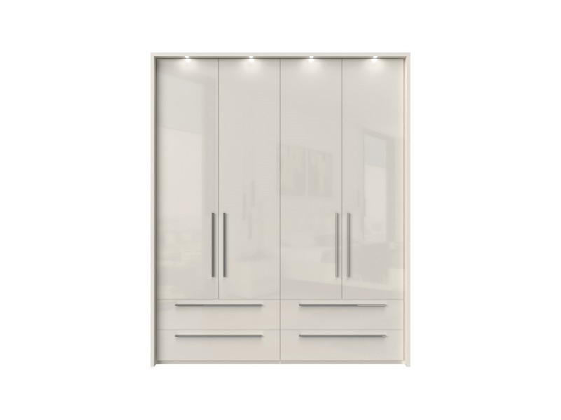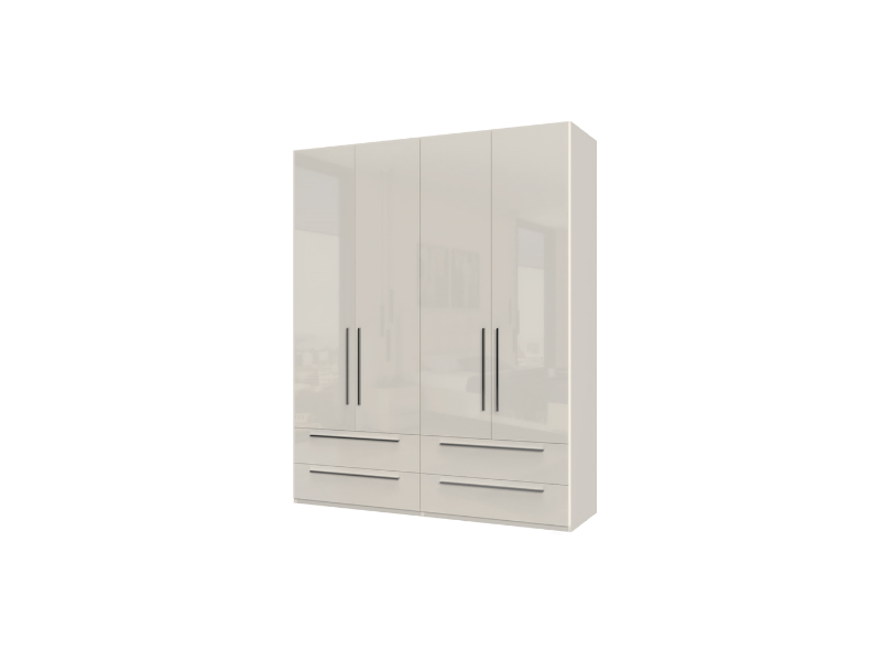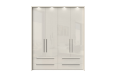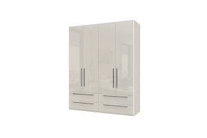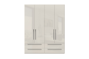 Dulap cu 4 usi si 4 sertare PIANO BEIGE 182x224x56cm bej lucios, manere crom