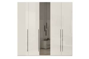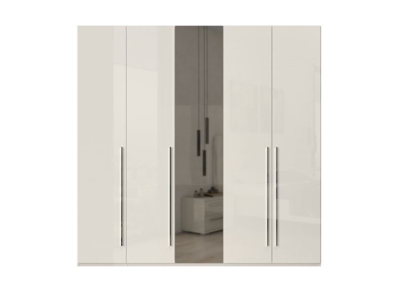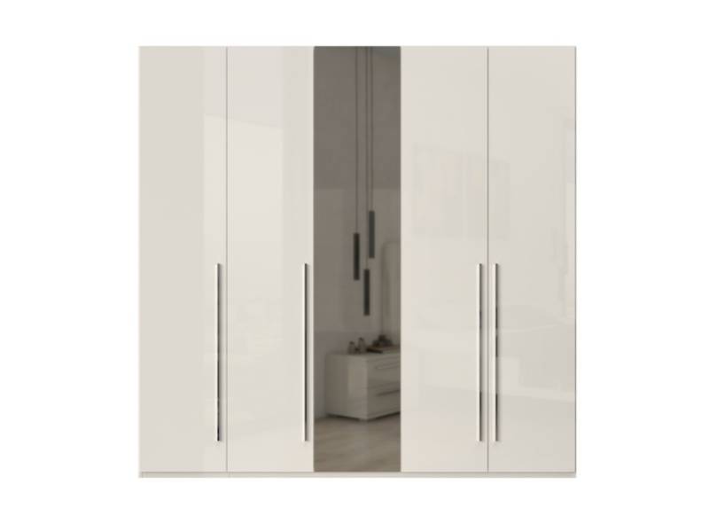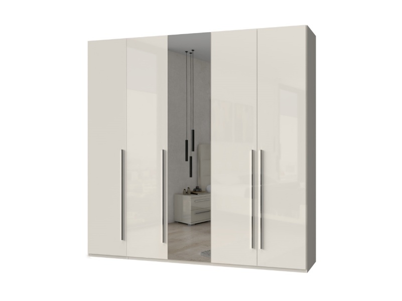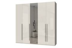 Dulap cu 5 usi cu balamale PIANO BEIGE 227x224x56cm bej lucios/ oglinda, maner crom
