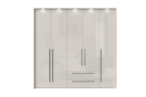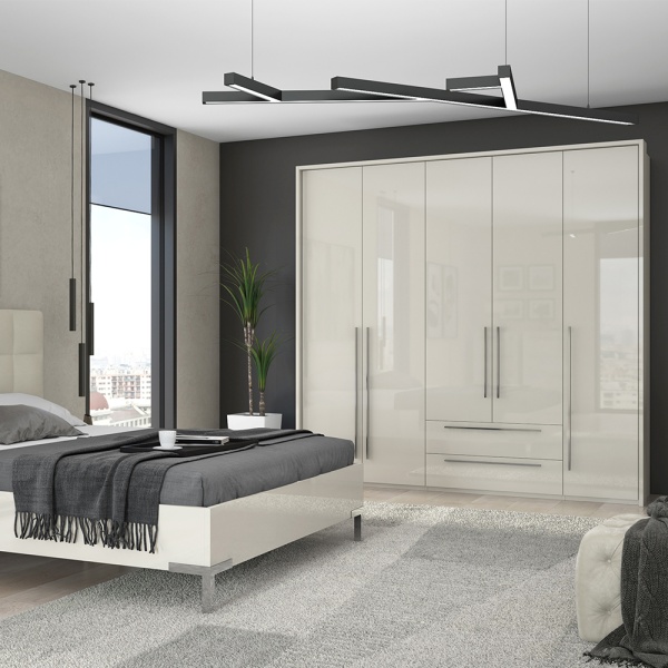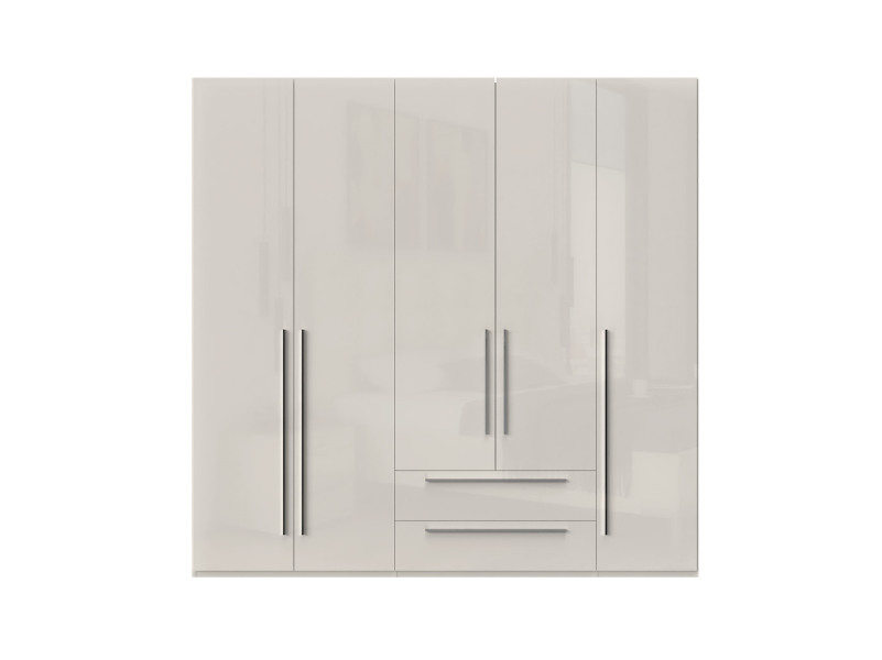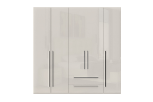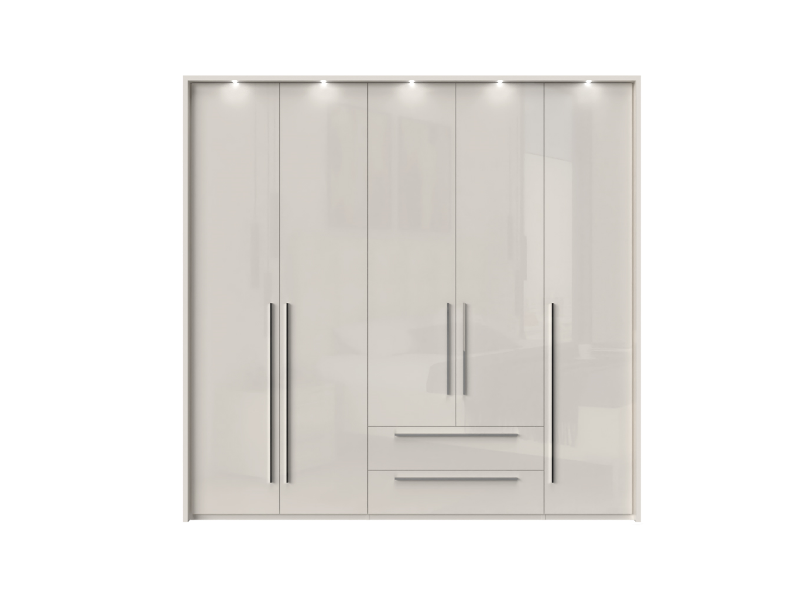 Dulap cu 5 usi si 2 sertare PIANO BEIGE 227x224x56cm bej lucios, maner crom