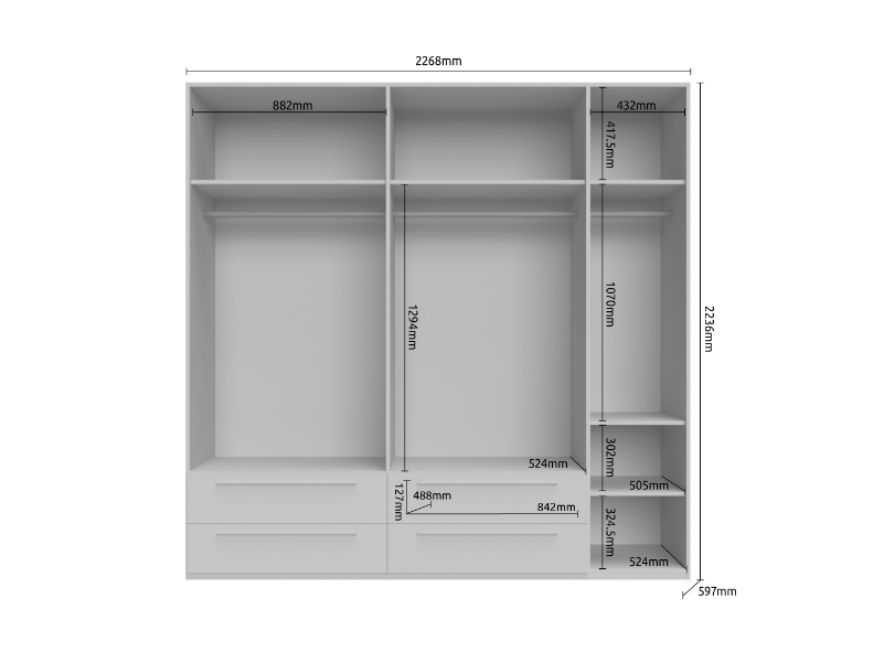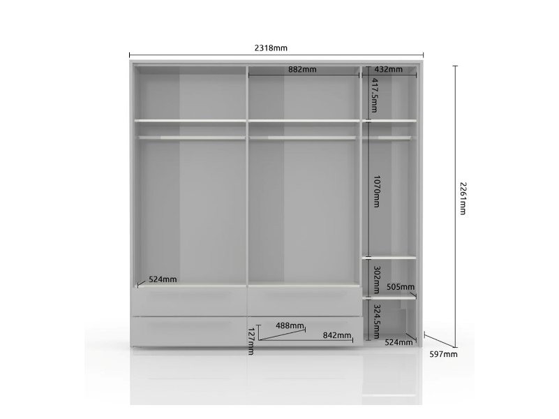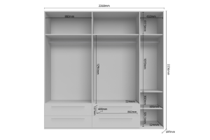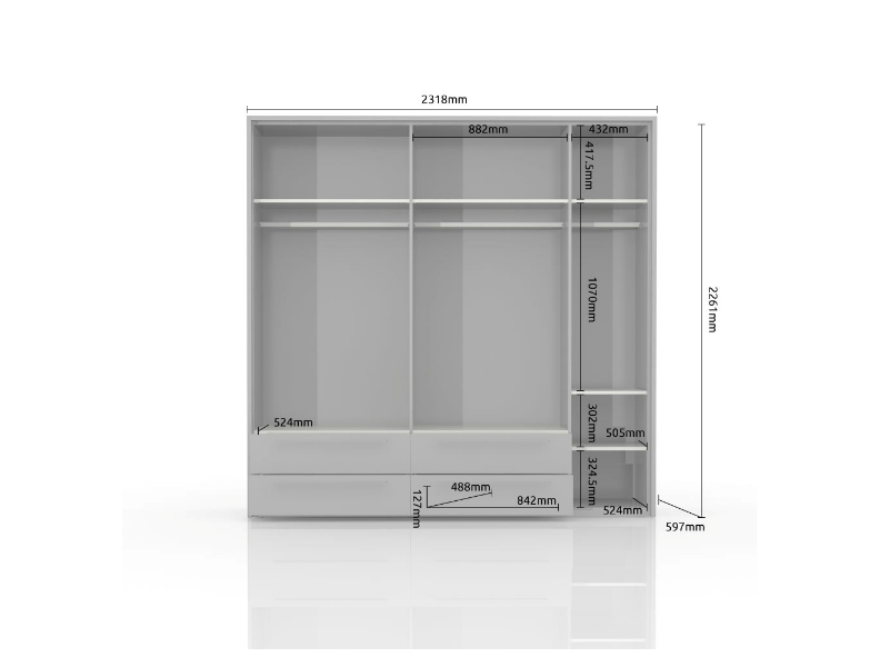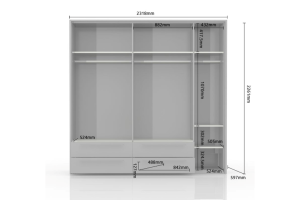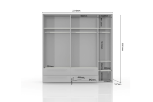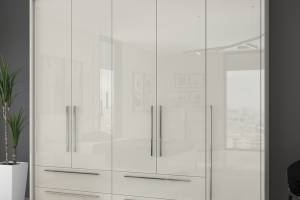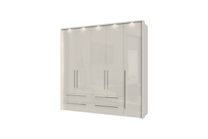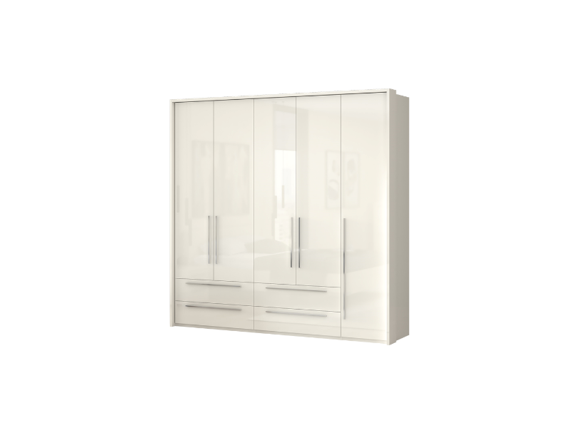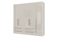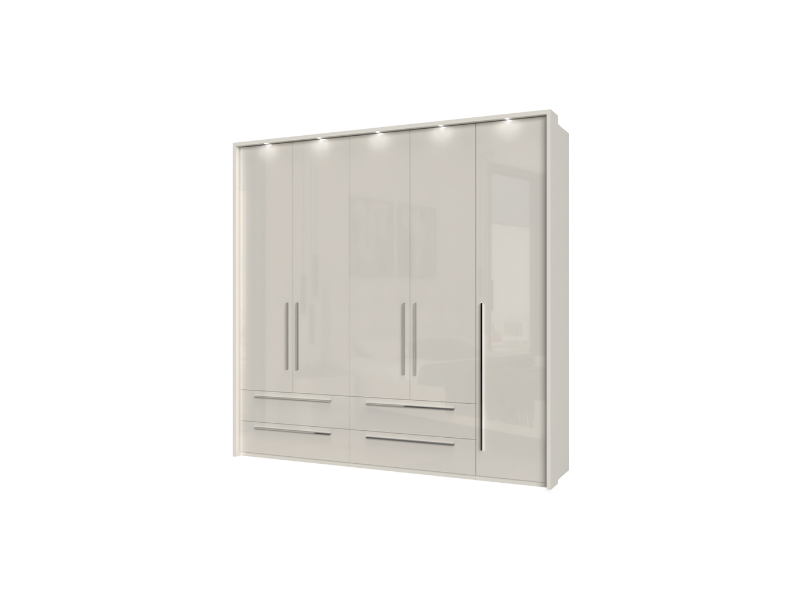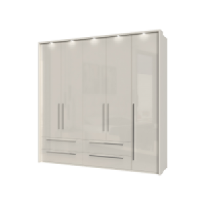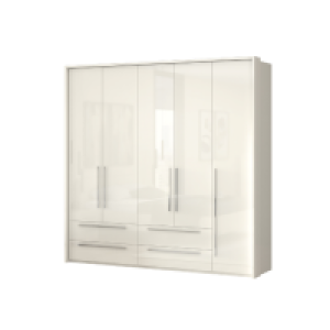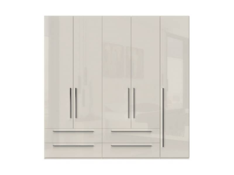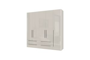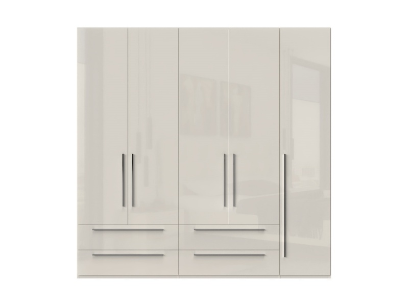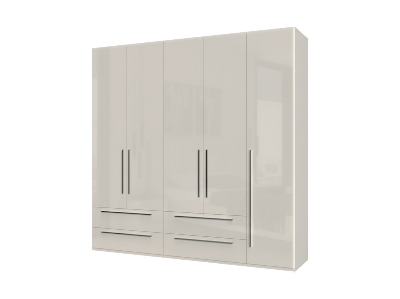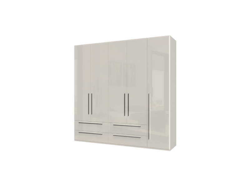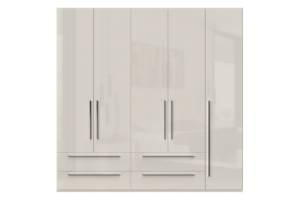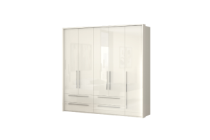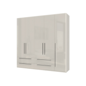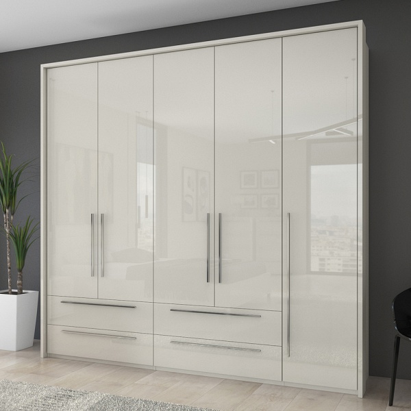 Dulap cu 5 usi si 4 sertare PIANO BEIGE 227x224x56cm bej lucios, maner crom