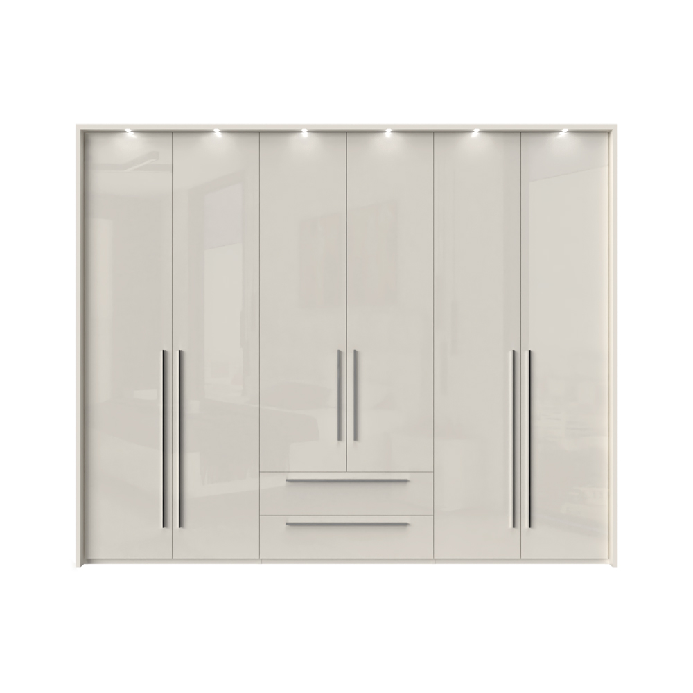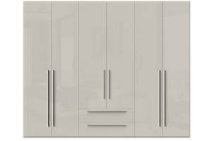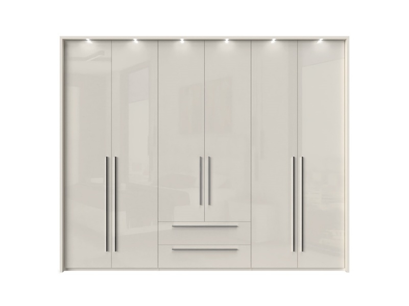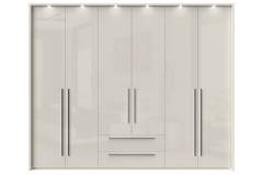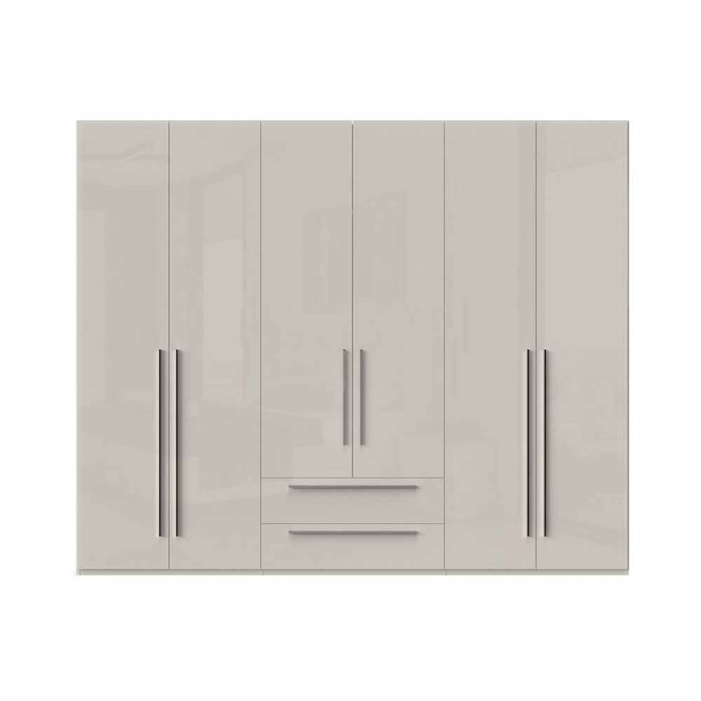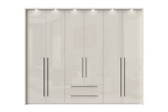 Dulap cu 6 usi si 2 sertare PIANO BEIGE 272x224x56cm bej lucios, maner crom