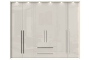 Dulap cu 7 usi cu balamale PIANO BEIGE 317x224x56cm bej lucios, maner crom