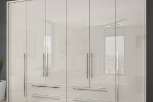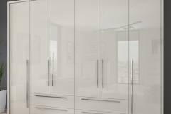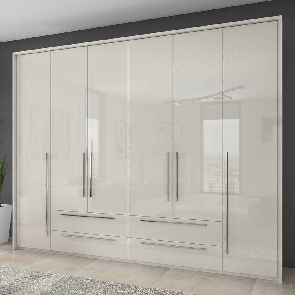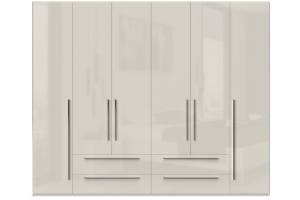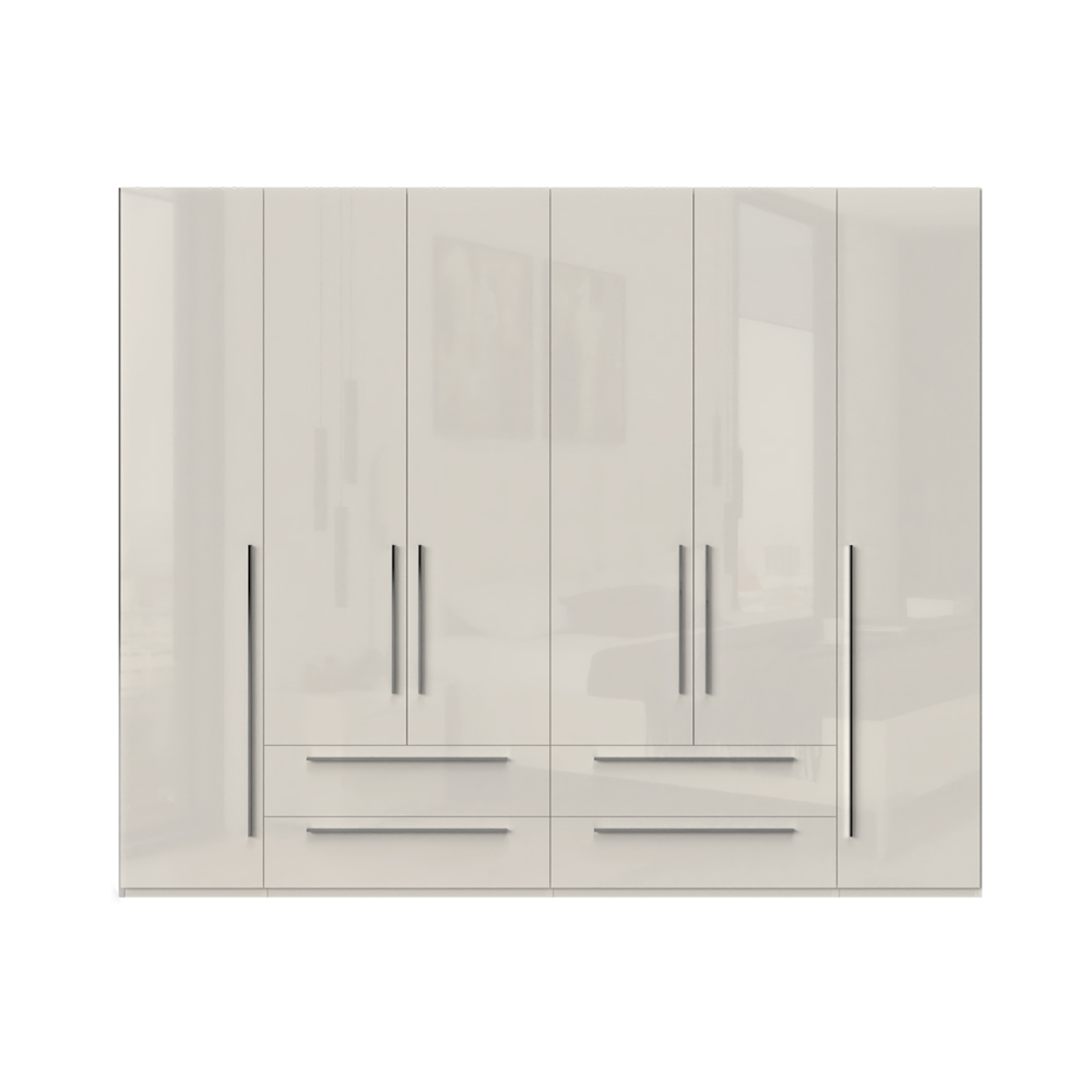 Dulap cu 6 usi si 4 sertare PIANO BEIGE 272x224x56cm bej lucios, maner crom