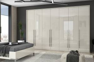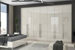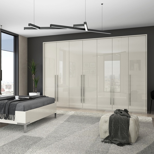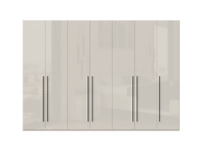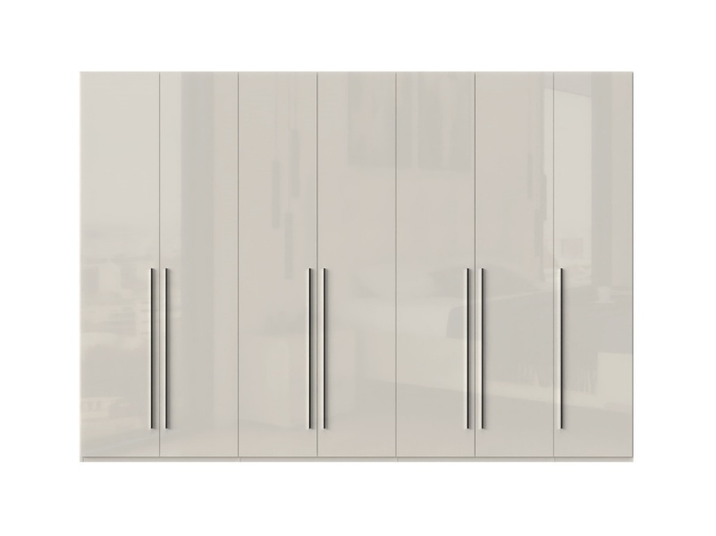 Dulap cu 7 usi cu balamale PIANO BEIGE 317x224x56cm bej lucios, maner crom
