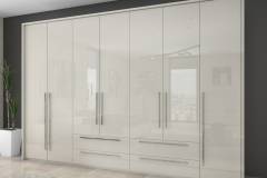 Dulap cu 4 usi si 2 sertare PIANO BEIGE 182x224x56cm bej lucios, manere crom