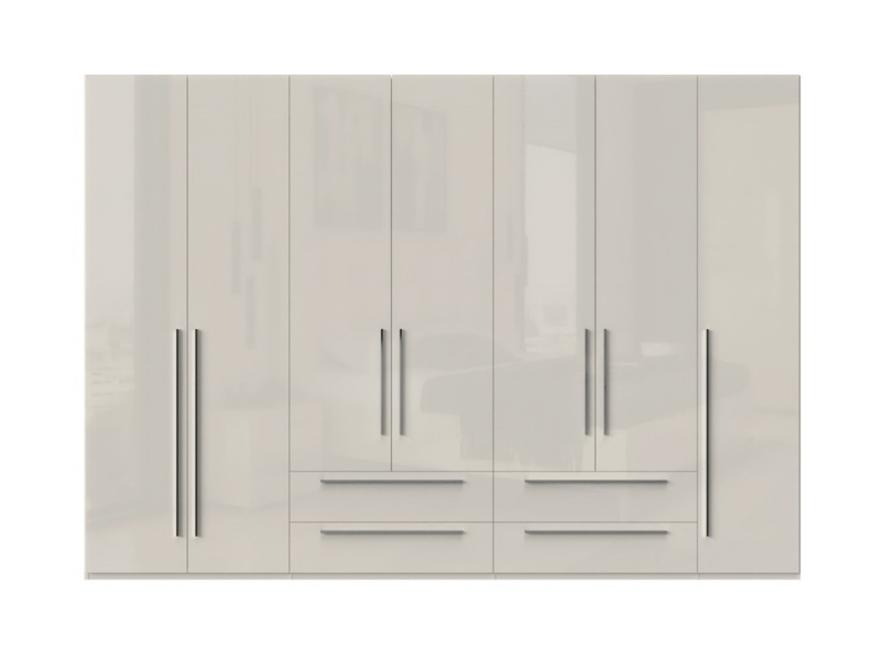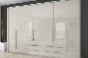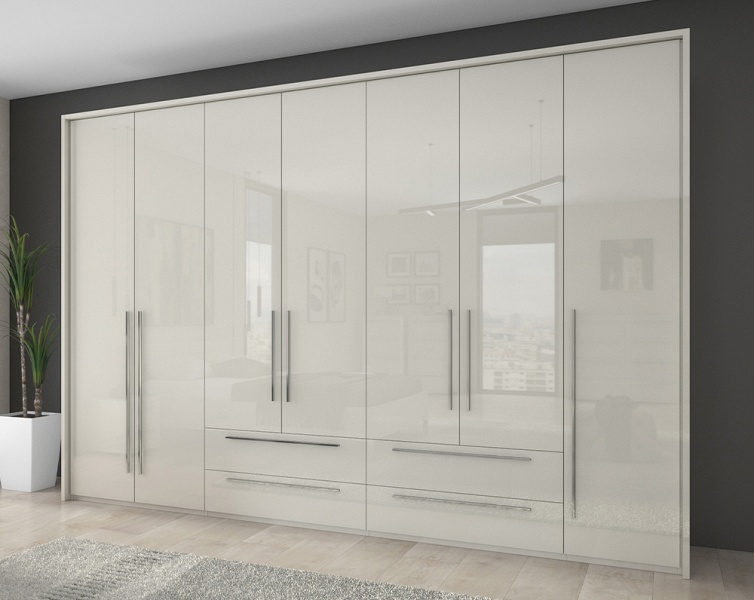 Dulap cu 7 usi si 4 sertare PIANO BEIGE 317x224x56cm bej lucios, maner crom
