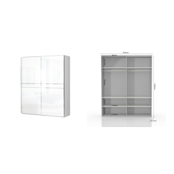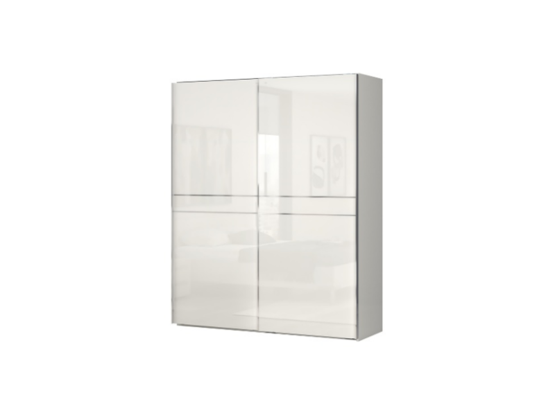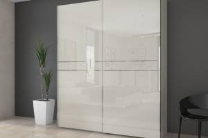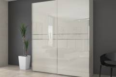 Dulap cu usi glisante PIANO BEIGE 182x224x61cm bej lucios, manere crom