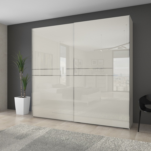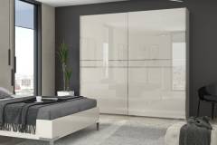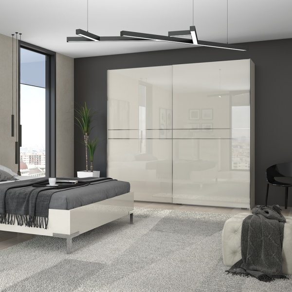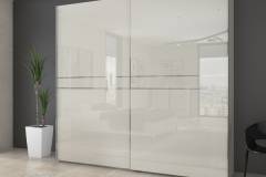 Dulap cu usi glisante PIANO BEIGE 230x224x61cm bej lucios, maner crom