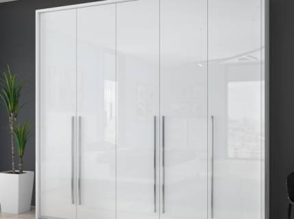 Comoda cu 4 sertare PIANO WHITE 76x97x45cm alb lucios, manere crom