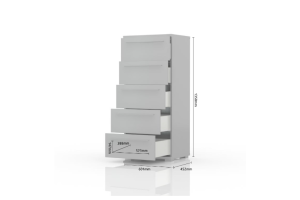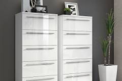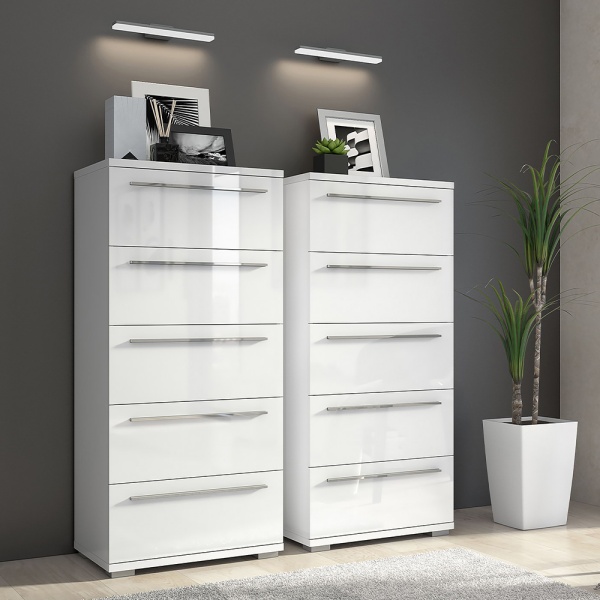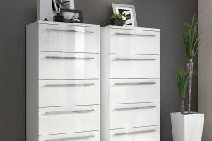 Comoda cu 5 sertare PIANO WHITE 60x135x45cm alb lucios, manere crom