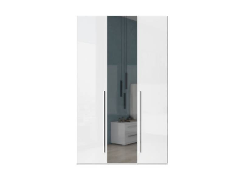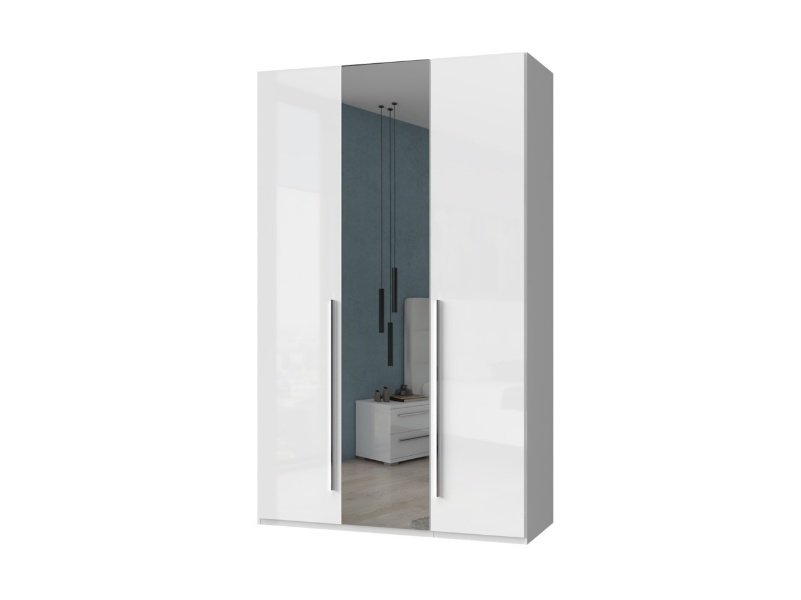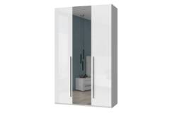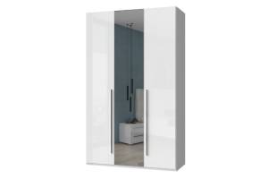 Dulap cu 3 usi cu balamale PIANO WHITE 137x224x56cm alb lucios/ oglinda, manere crom