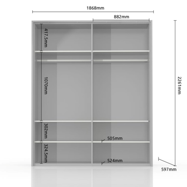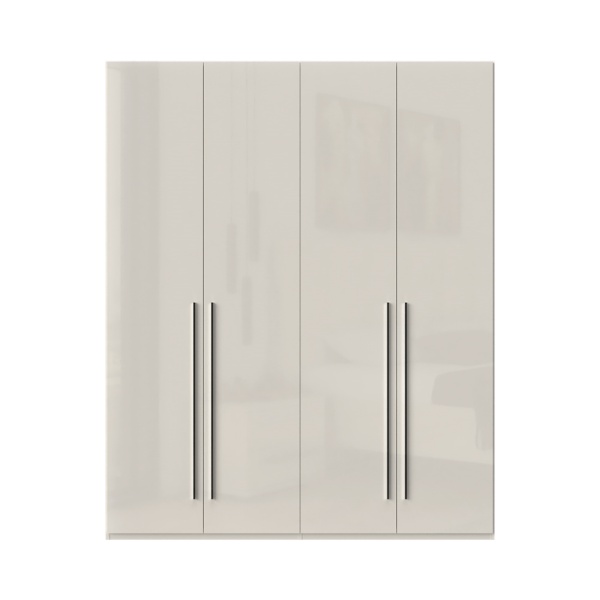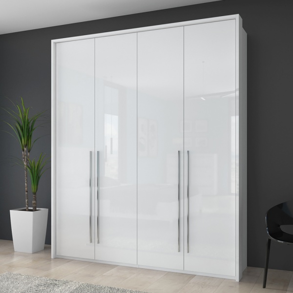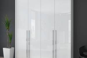 Dulap cu 4 usi cu balamale PIANO WHITE 182x224x56cm alb lucios, manere crom