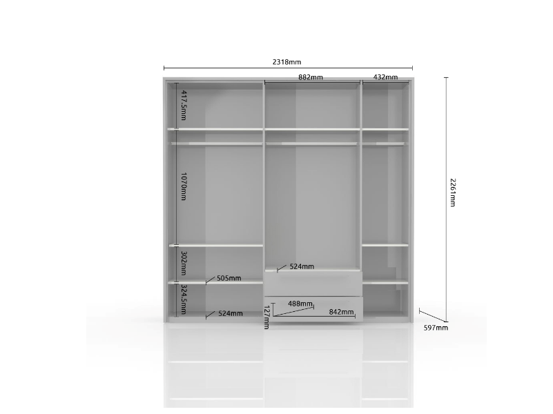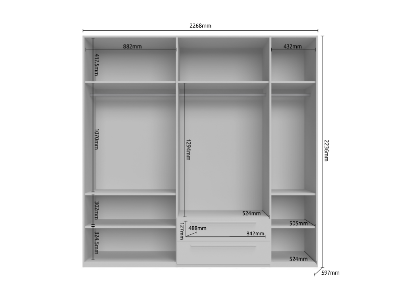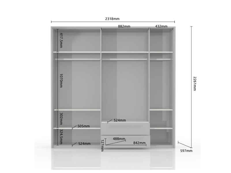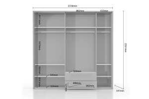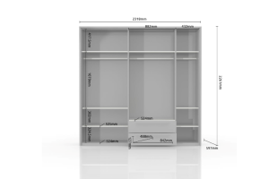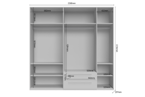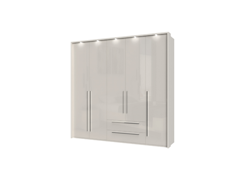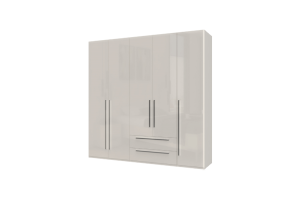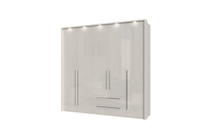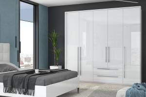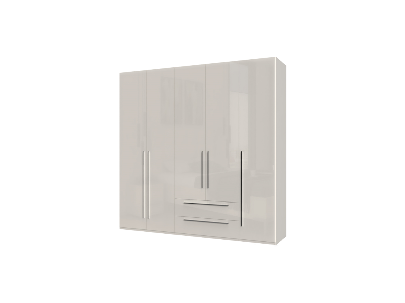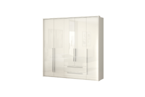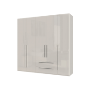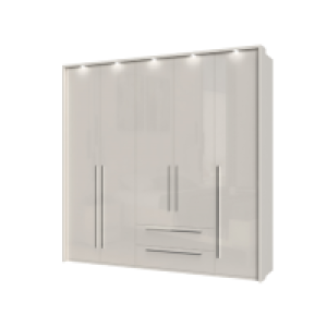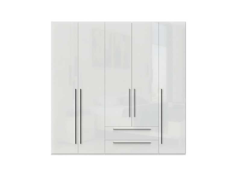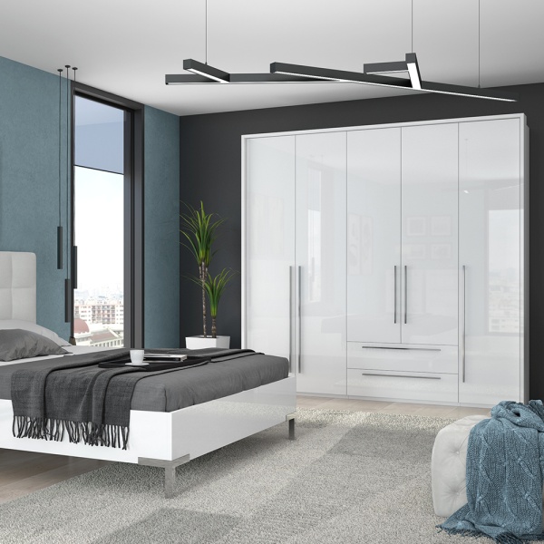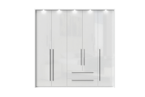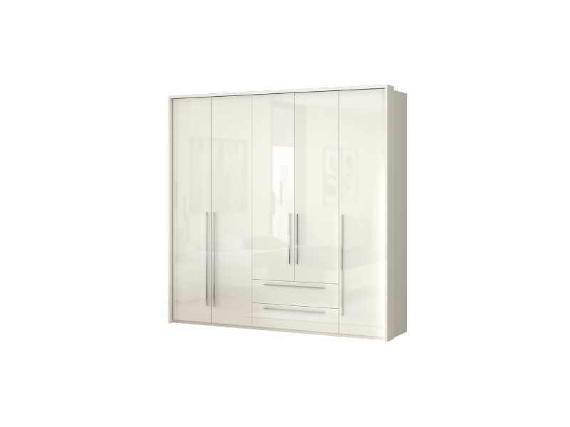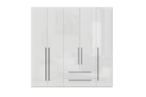 Dulap cu 5 usi si 2 sertare PIANO WHITE 227x224x56cm alb lucios, maner crom