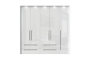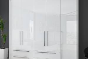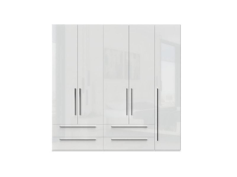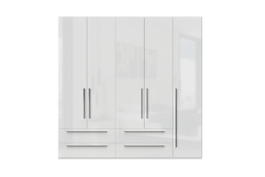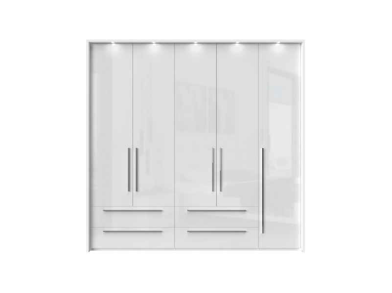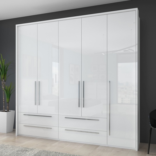 Dulap cu 5 usi si 4 sertare PIANO WHITE 227x224x56cm alb lucios, maner crom