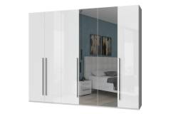 Dulap cu 6 usi cu balamale PIANO WHITE 272x224x56cm alb lucios, maner crom
