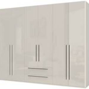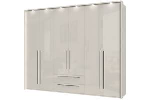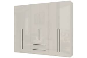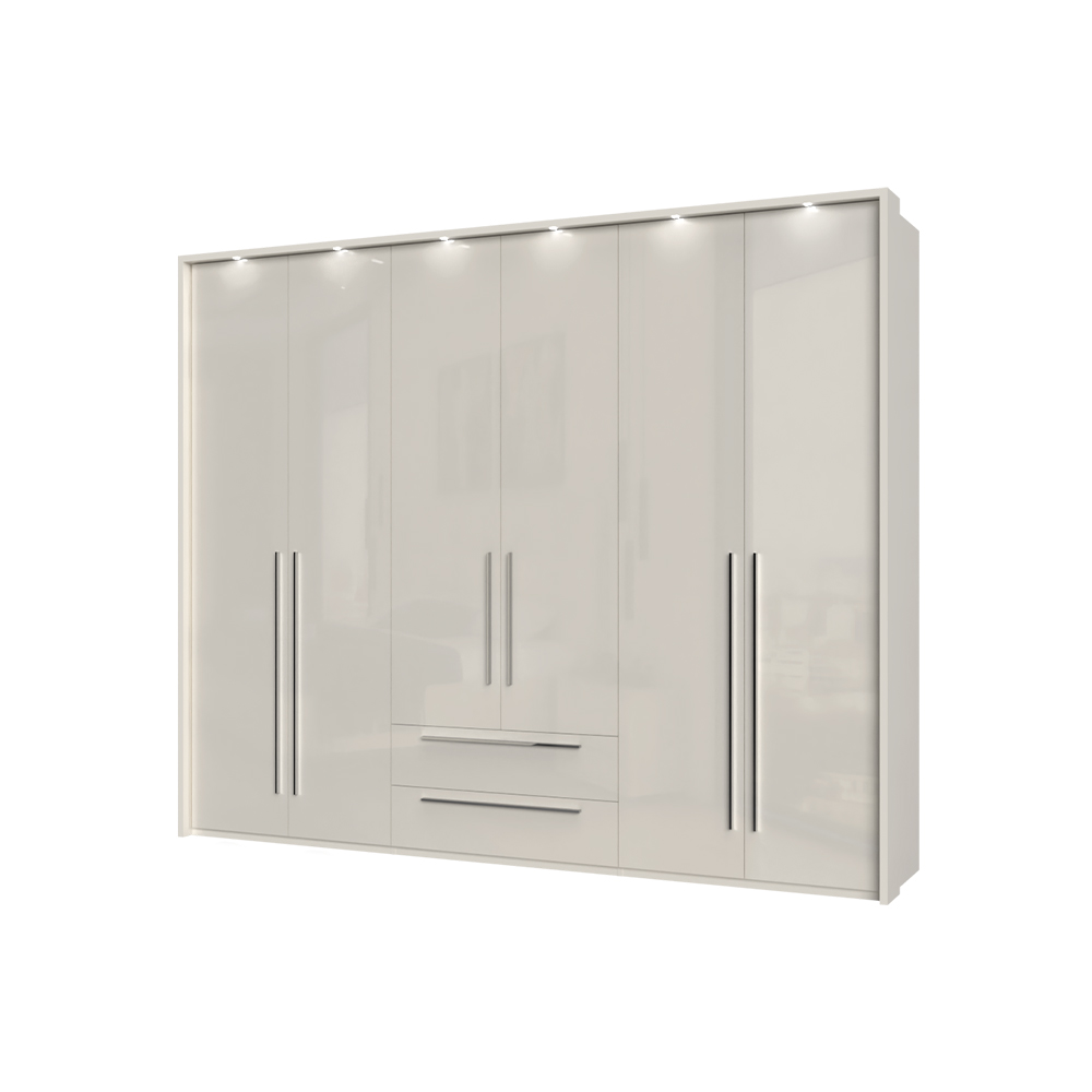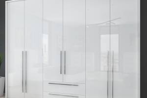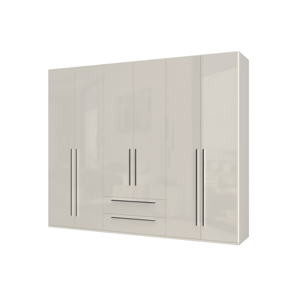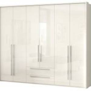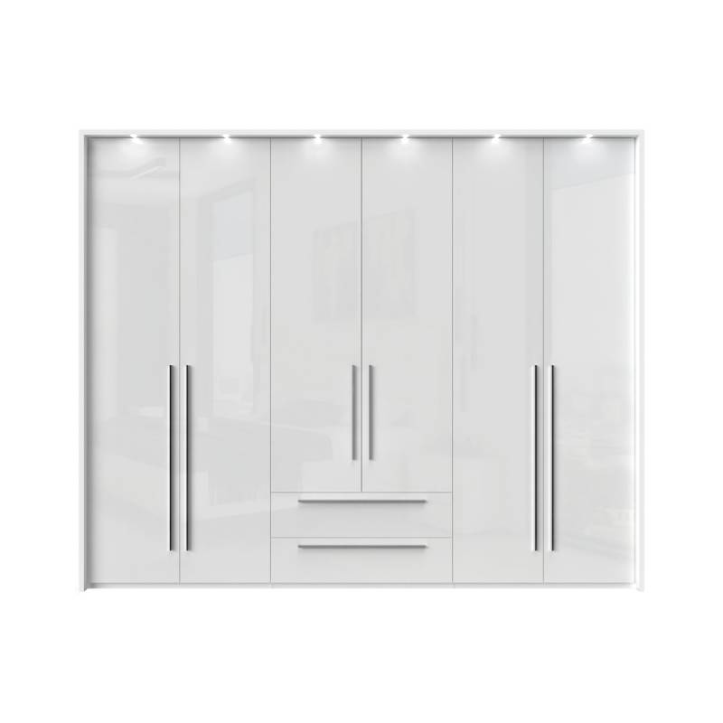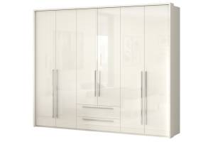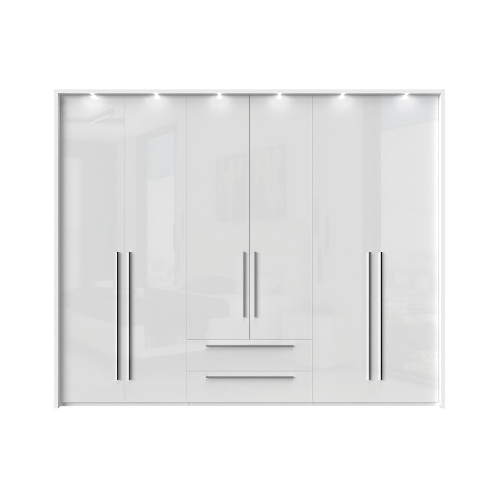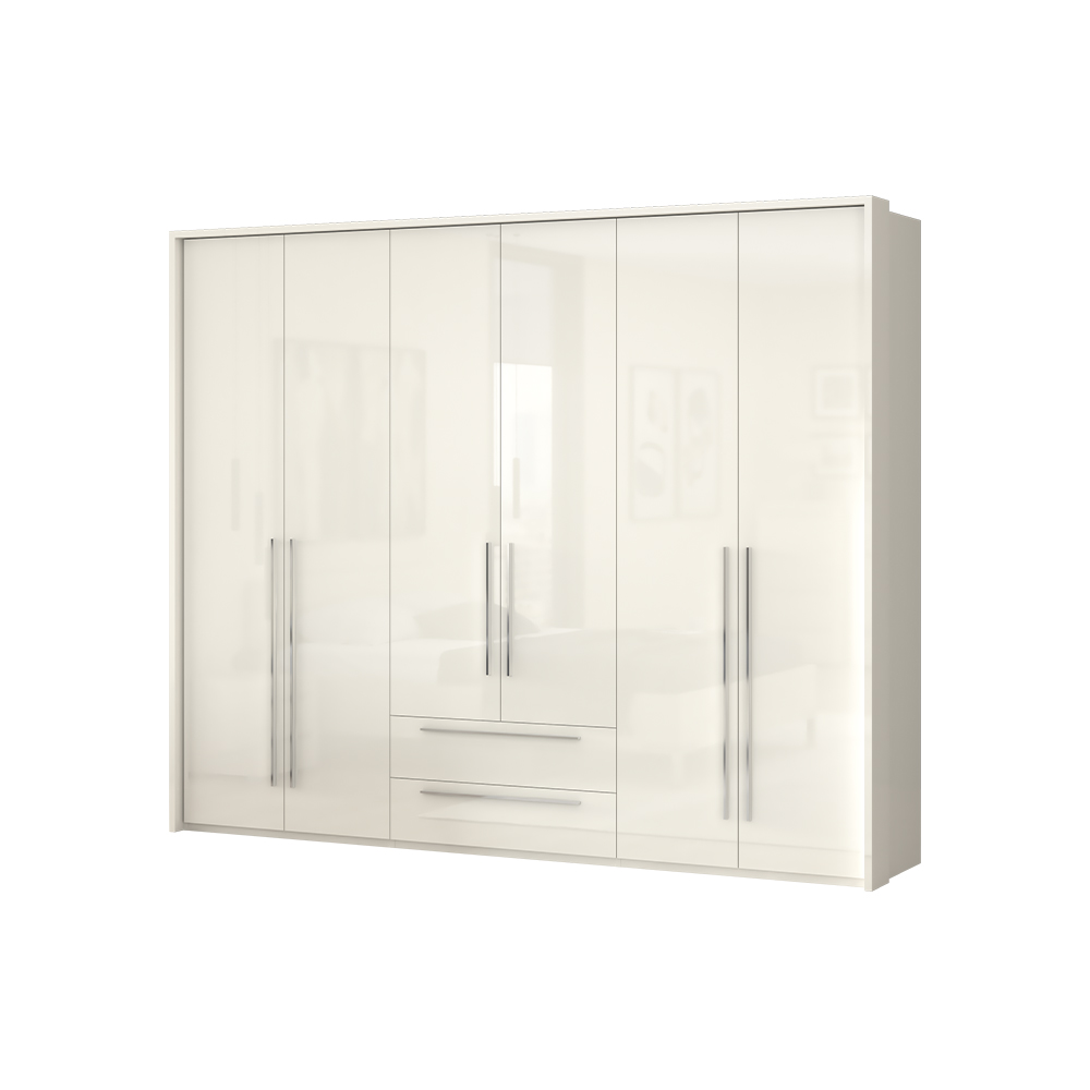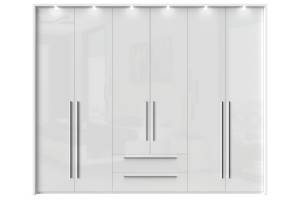 Dulap cu 6 usi si 2 sertare PIANO WHITE 272x224x56cm alb lucios, maner crom