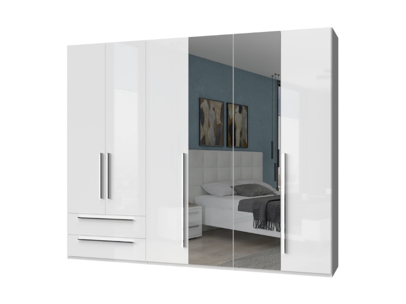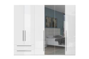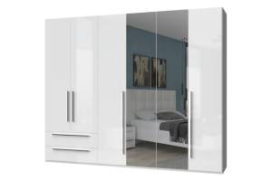 Dulap cu 6 usi si 2 sertare PIANO WHITE 272x224x56cm alb lucios/ oglinda, maner crom