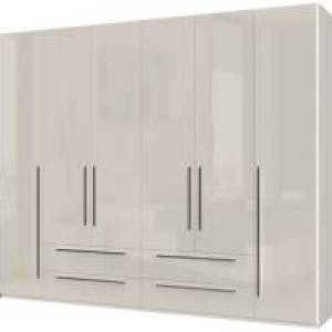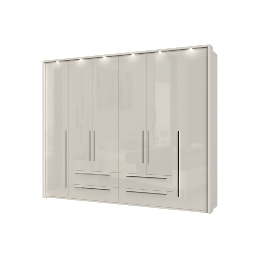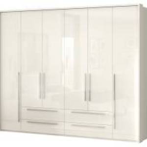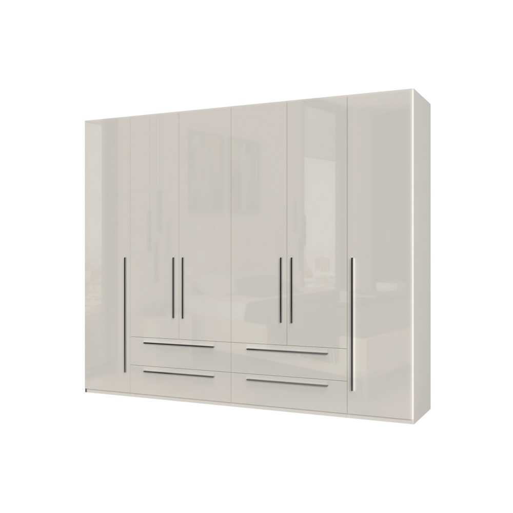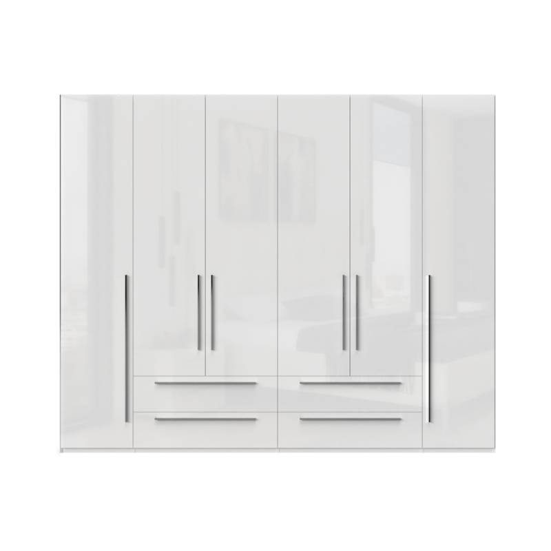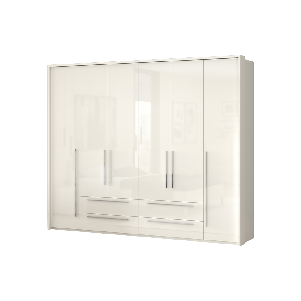 Dulap cu 6 usi si 4 sertare PIANO WHITE 272x224x56cm alb lucios, maner crom