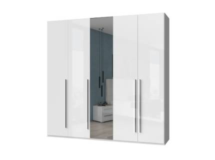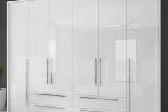 Dulap cu 5 usi si 4 sertare PIANO WHITE 227x224x56cm alb lucios, maner crom