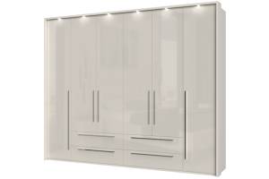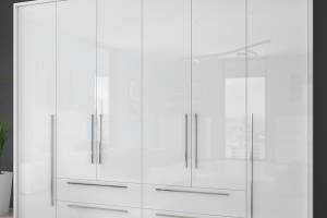 Dulap cu 6 usi cu balamale PIANO WHITE 272x224x56cm alb lucios, maner crom