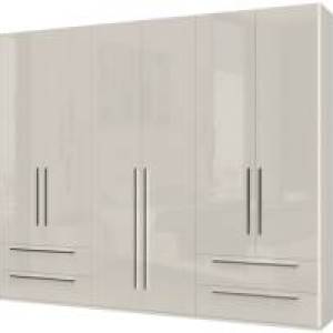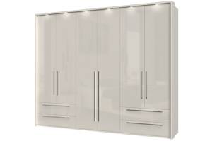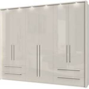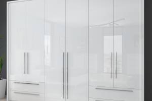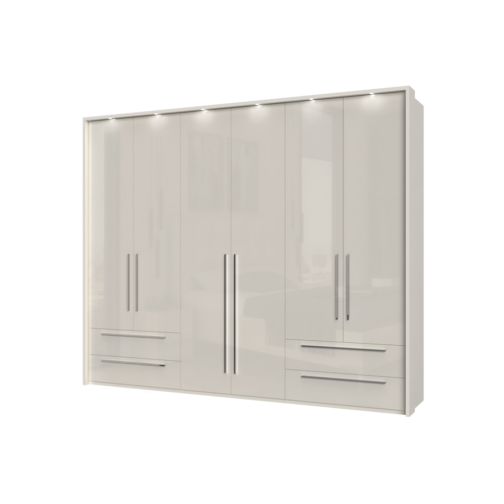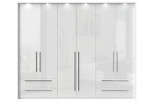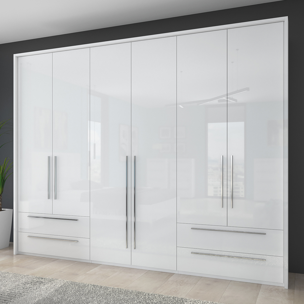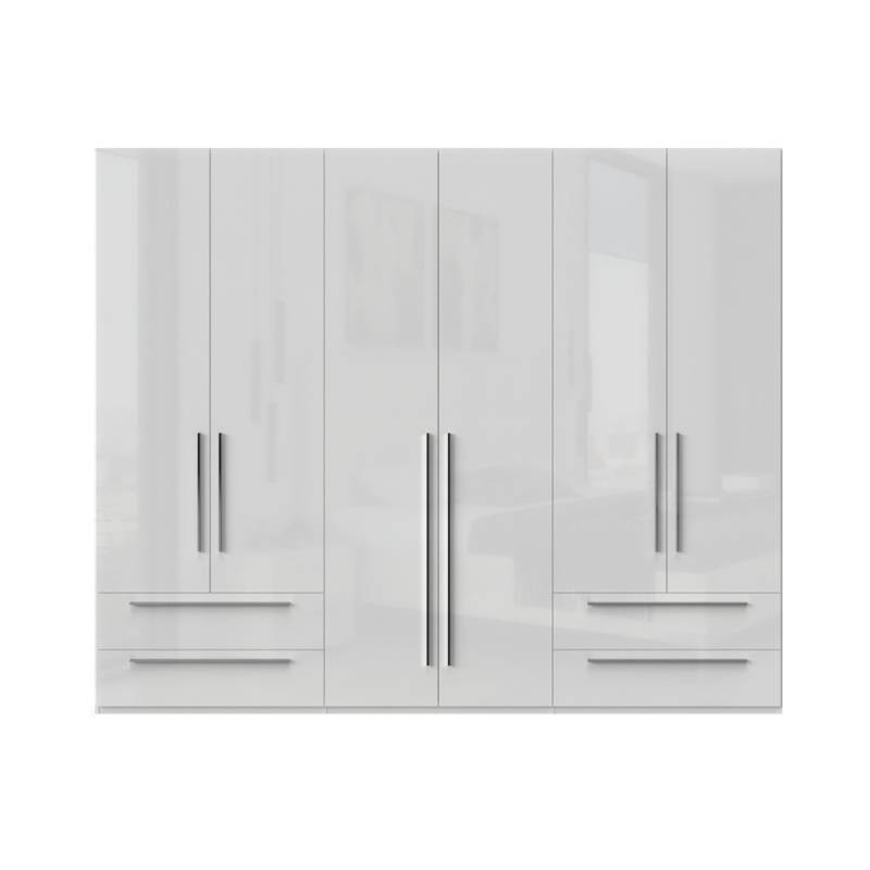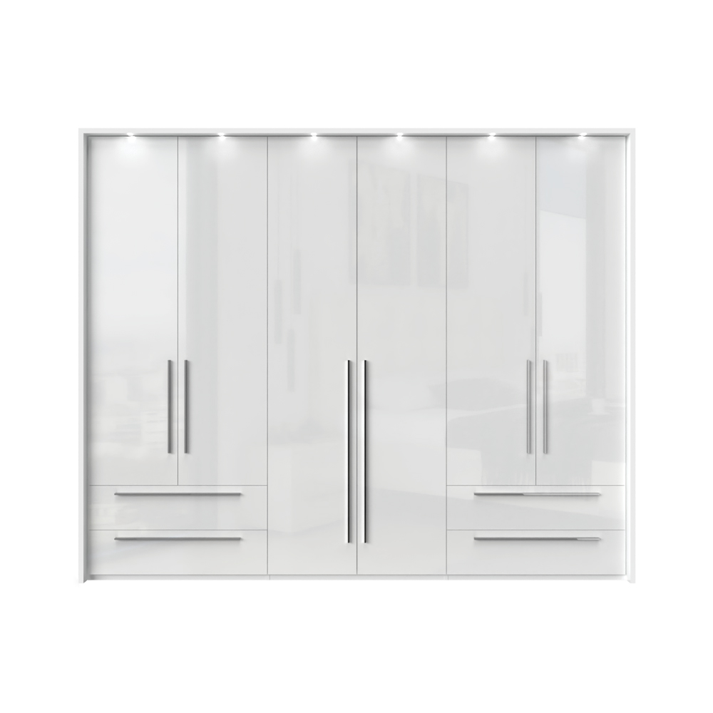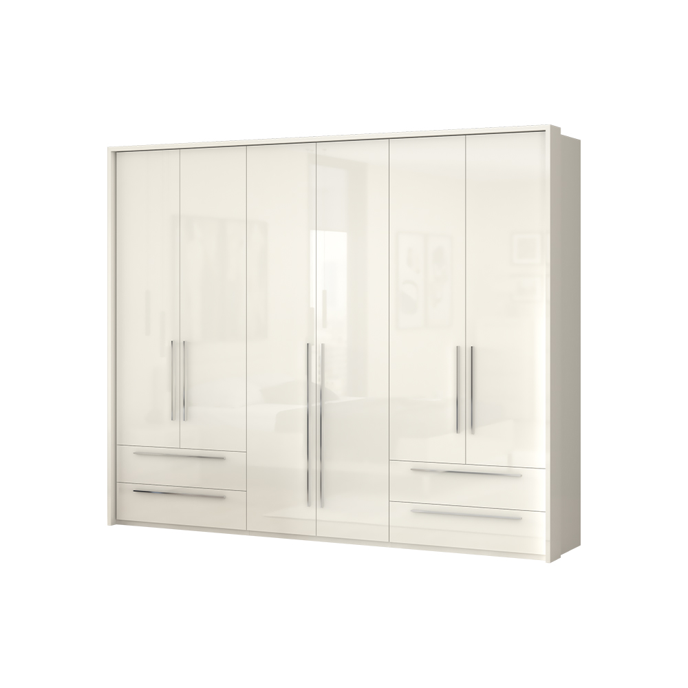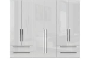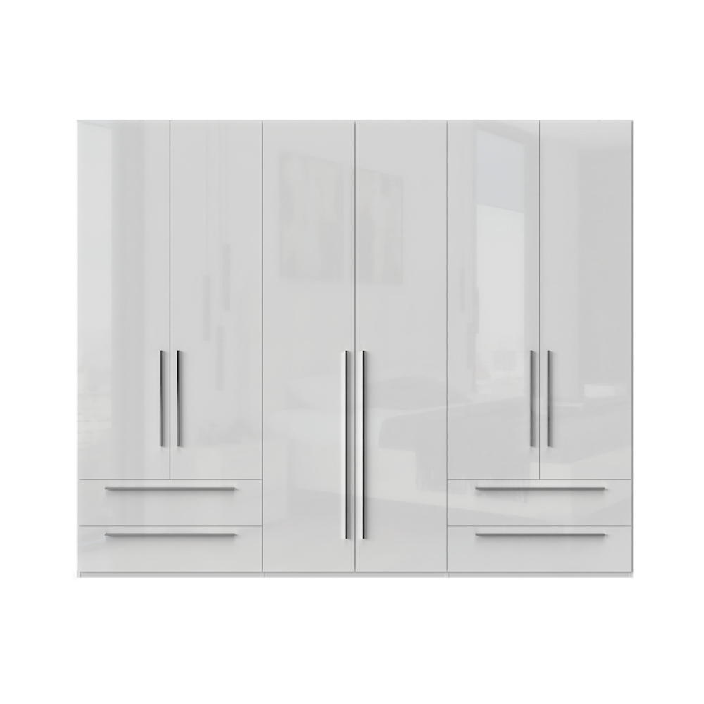 Dulap cu 6 usi si 4 sertare PIANO WHITE 272x224x56cm alb lucios, maner crom