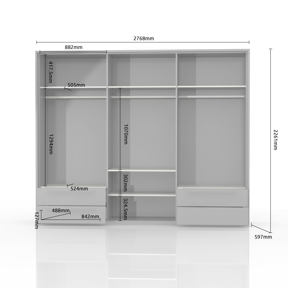 Dulap 6 usi + 4 sertare 270cm PIANO WHITE