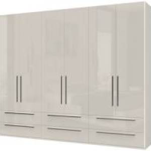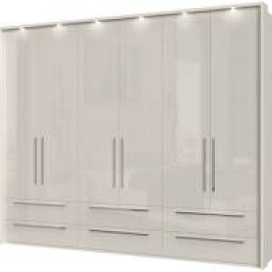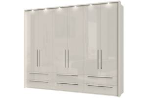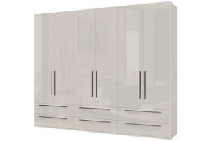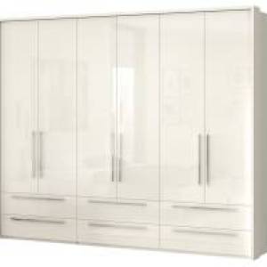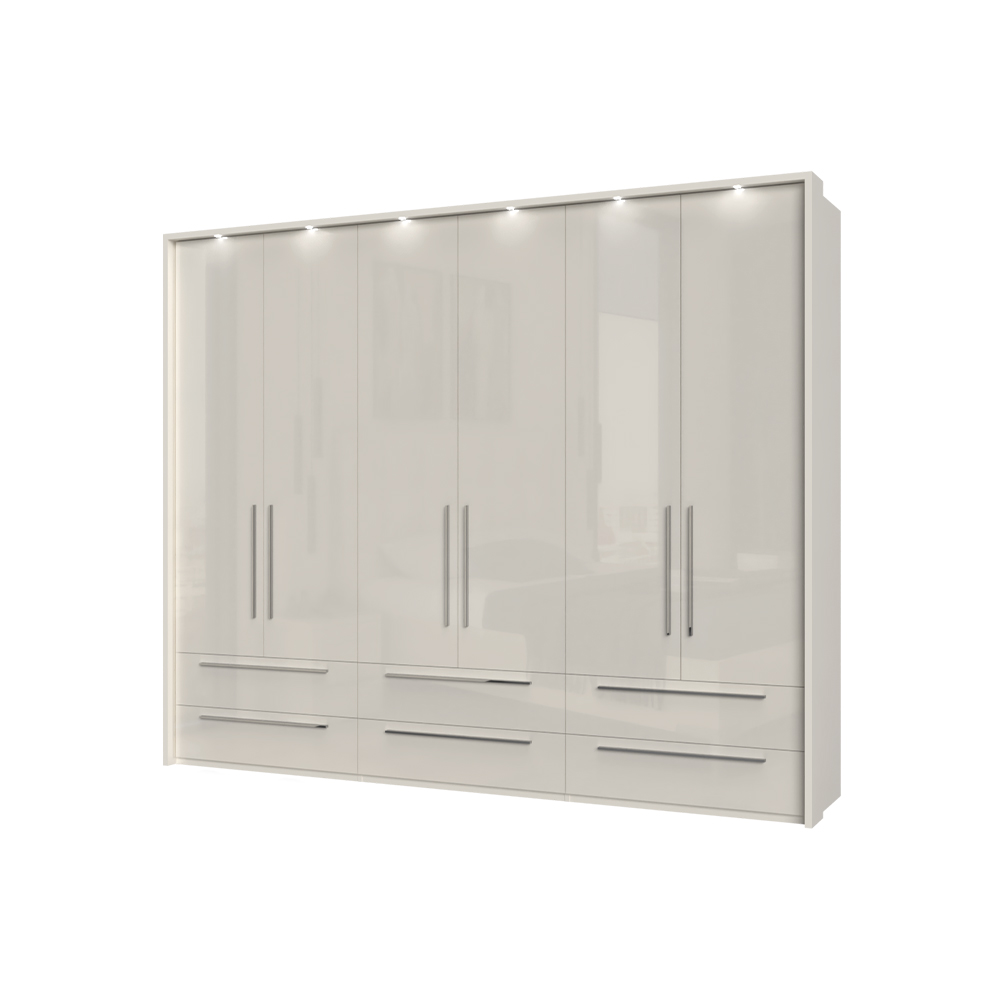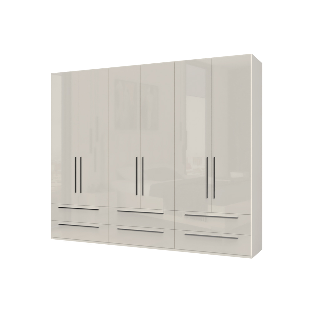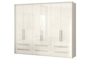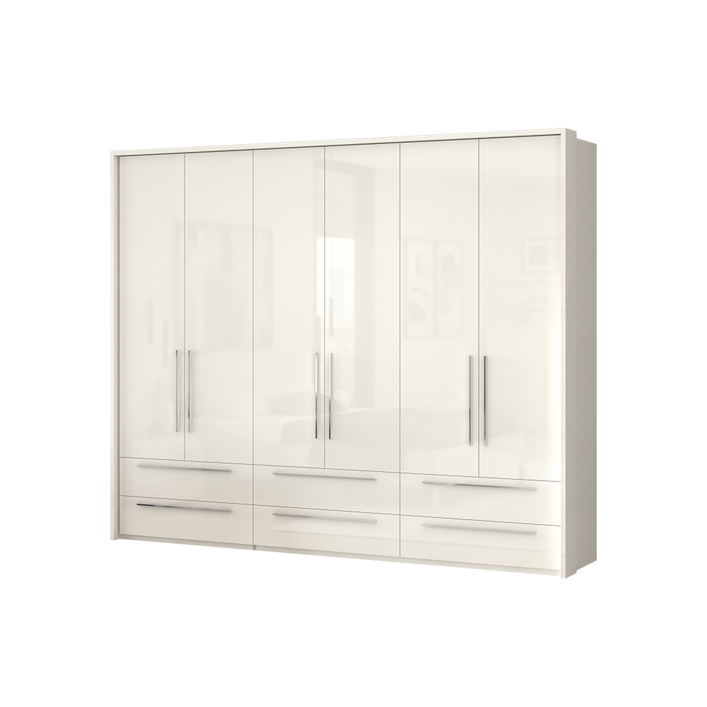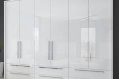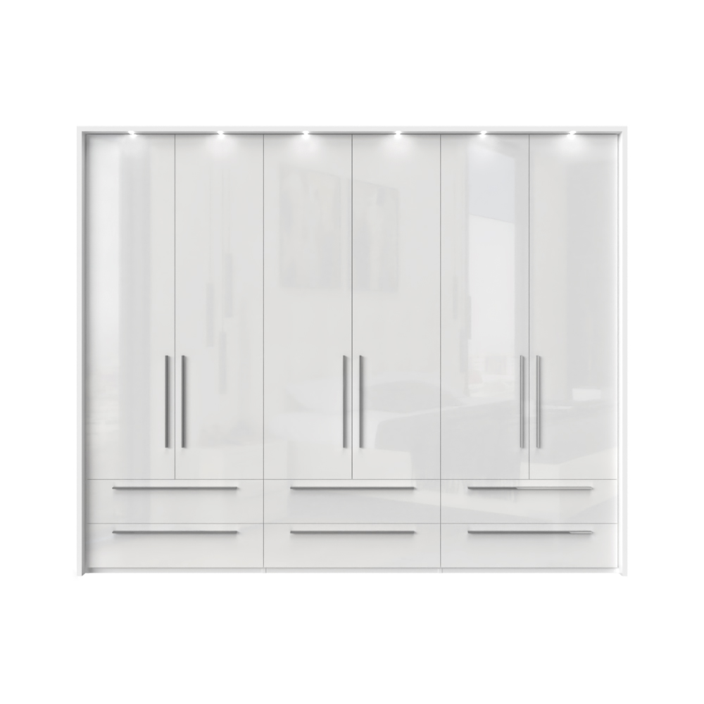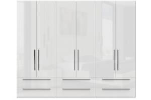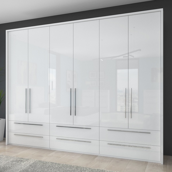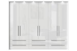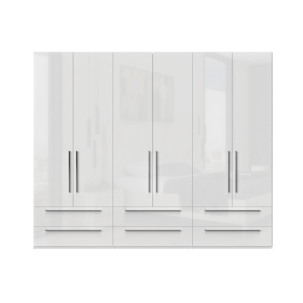 Dulap cu 6 usi si 6 sertare PIANO WHITE 272x224x56cm alb lucios, maner crom