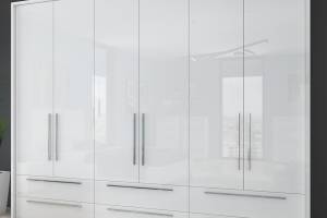 Dulap cu 5 usi si 4 sertare PIANO WHITE 227x224x56cm alb lucios, maner crom