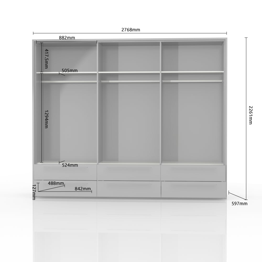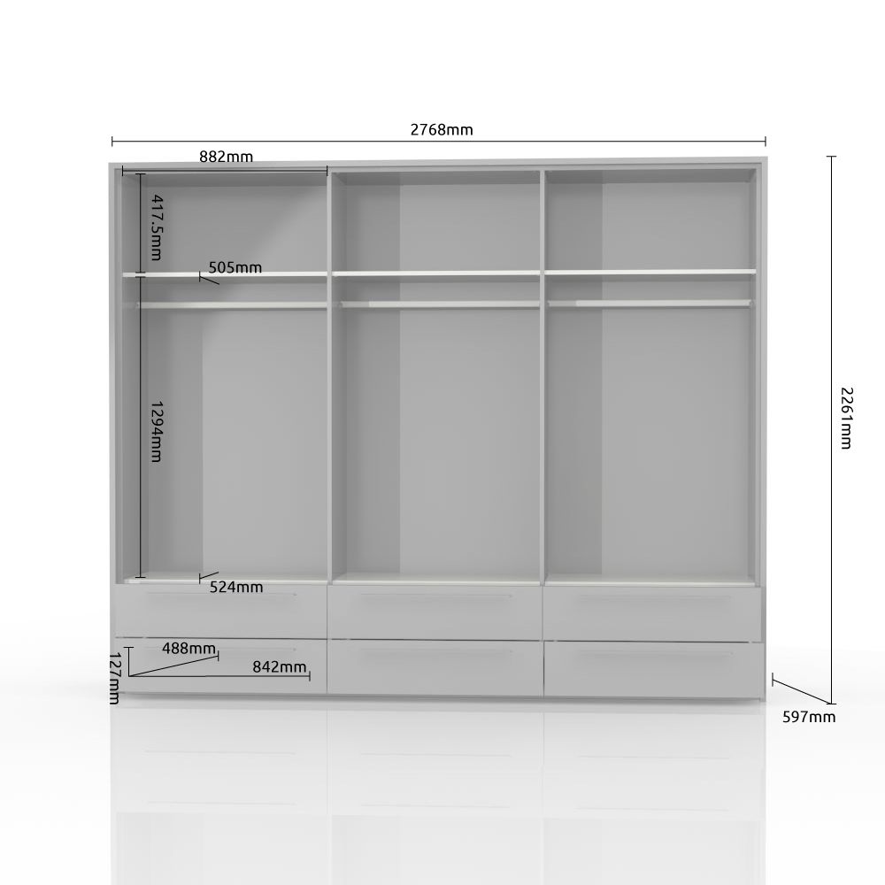 Dulap 6 usi + 6 sertare 270cm PIANO WHITE