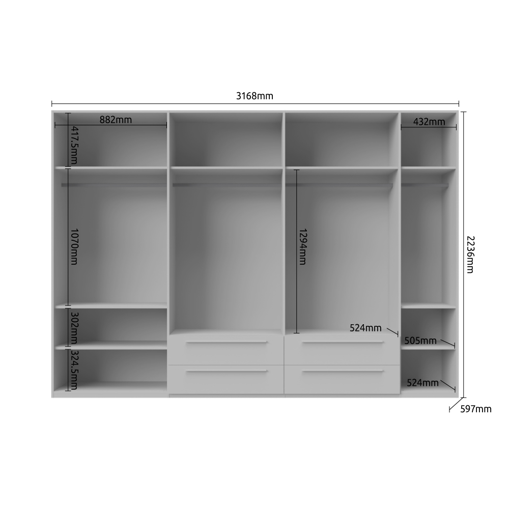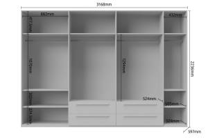Dulap 7 usi + 4 sertare 317cm PIANO WHITE
