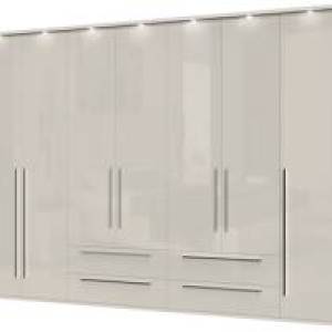 Dulap cu 7 usi si 6 sertare PIANO WHITE 317x224x56cm alb lucios, maner crom