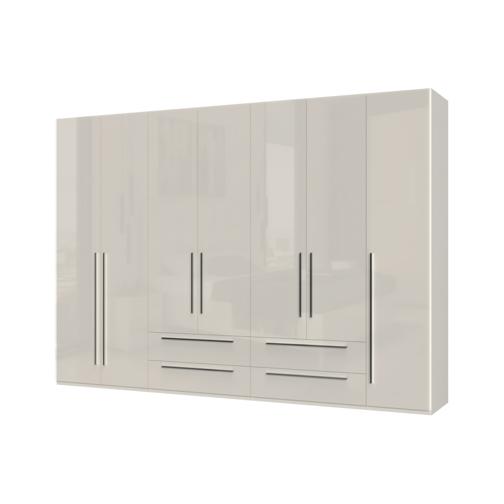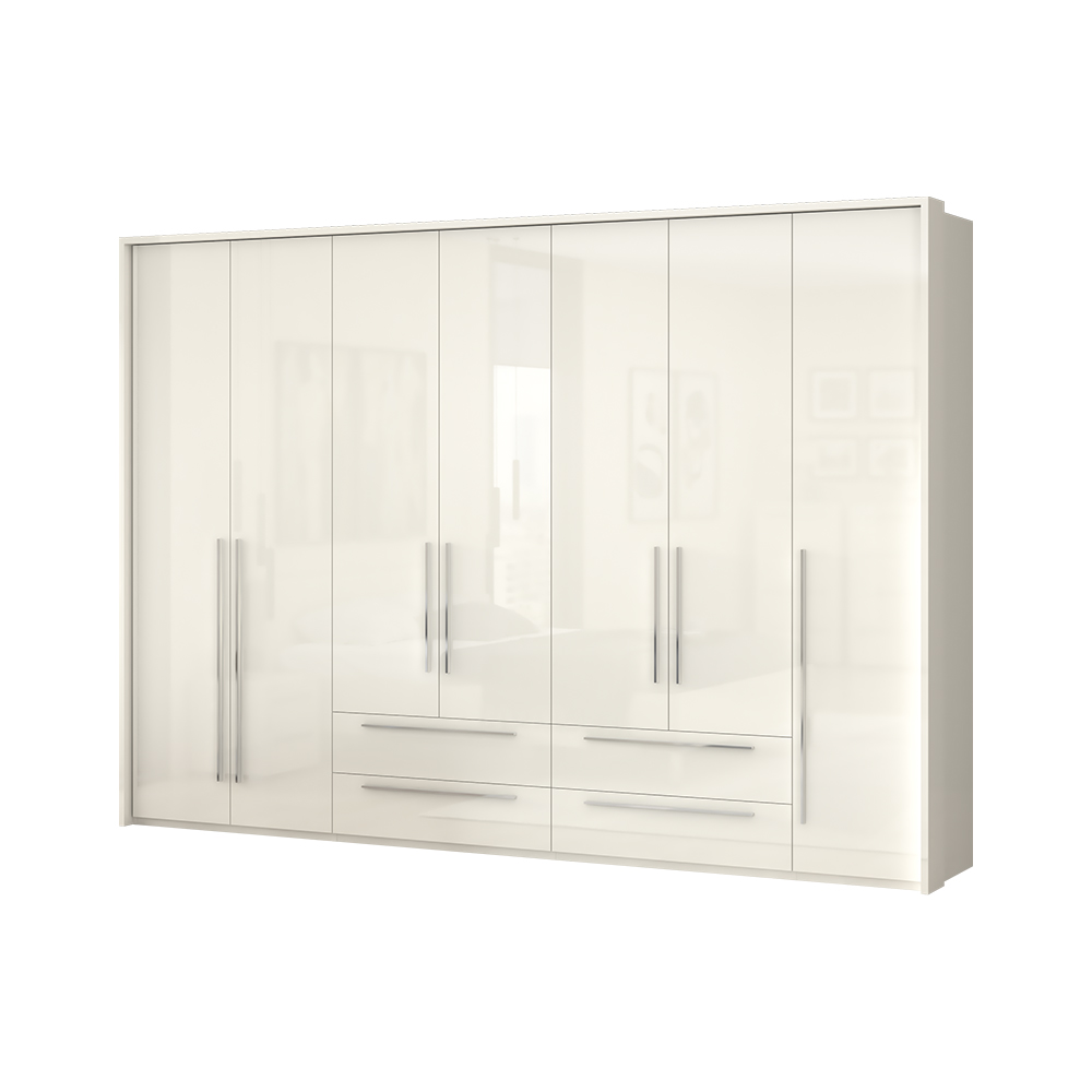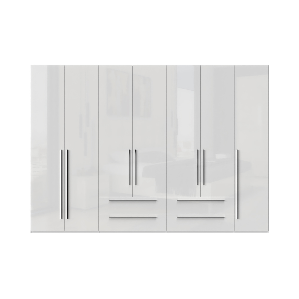Dulap cu 7 usi si 4 sertare PIANO WHITE 317x224x56cm alb lucios, maner crom
