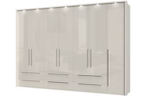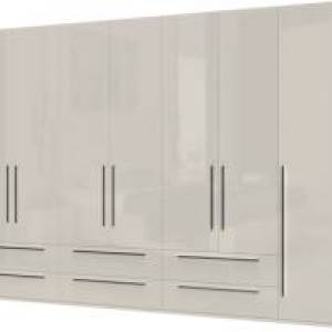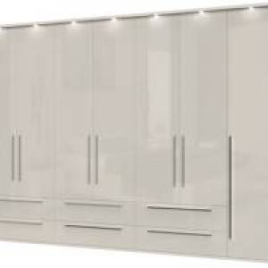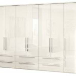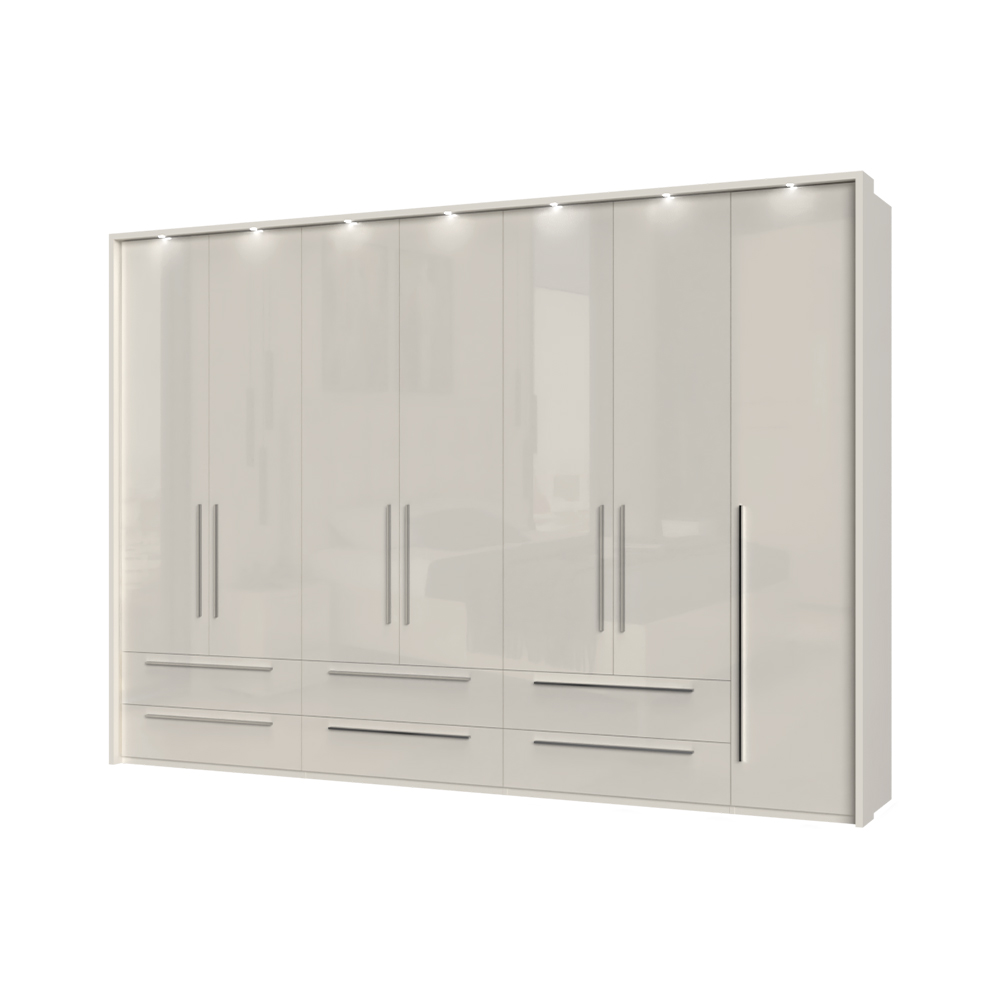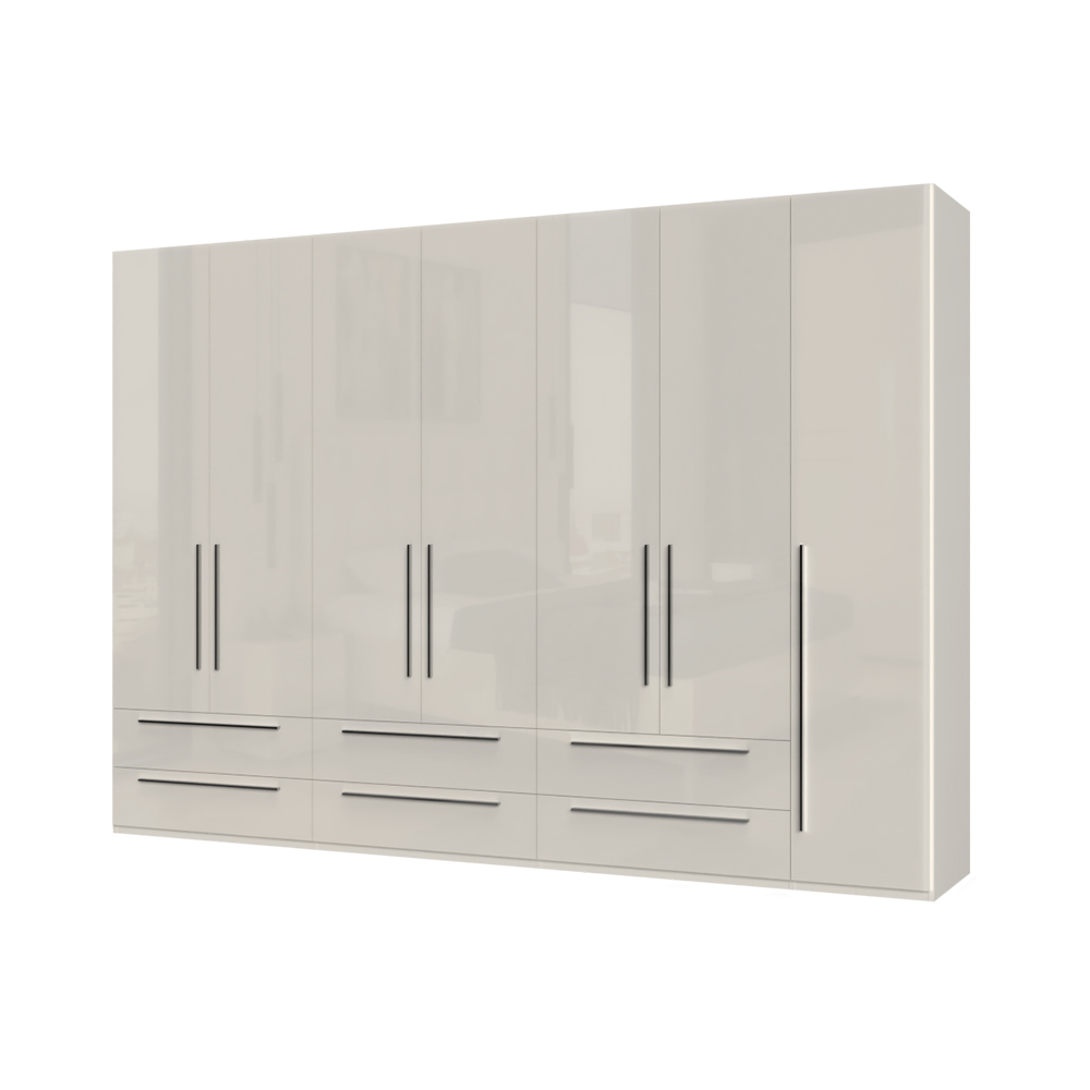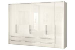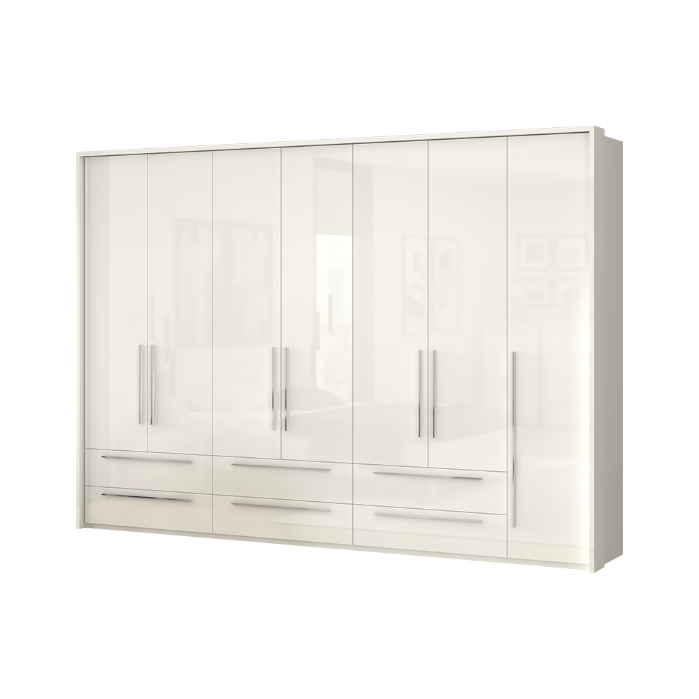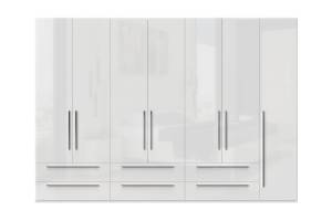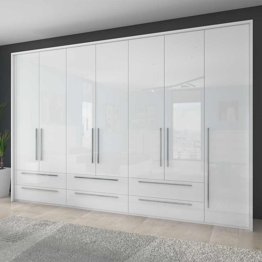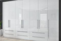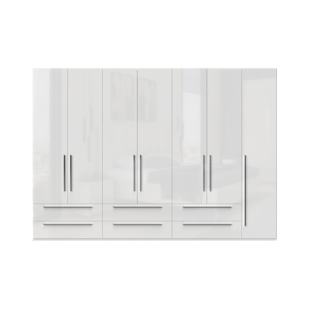Dulap cu 7 usi si 6 sertare PIANO WHITE 317x224x56cm alb lucios, maner crom