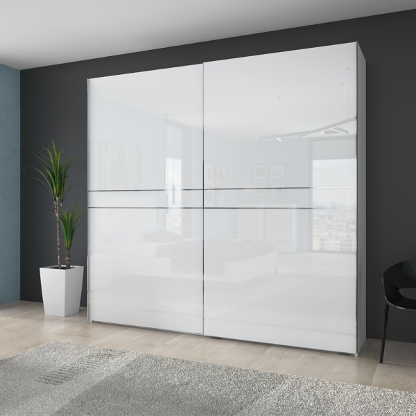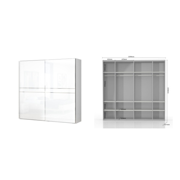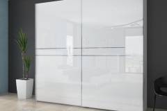 Dulap cu usi glisante PIANO WHITE 230x224x61cm alb lucios, manere crom