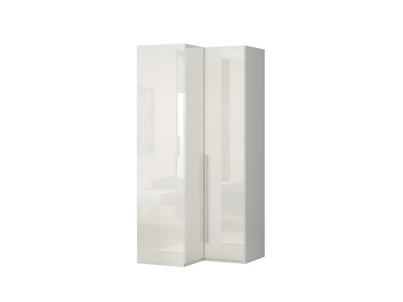 Dulap de colt cu 2 usi cu balamale PIANO WHITE 100/102x224x56cm alb lucios, maner crom
