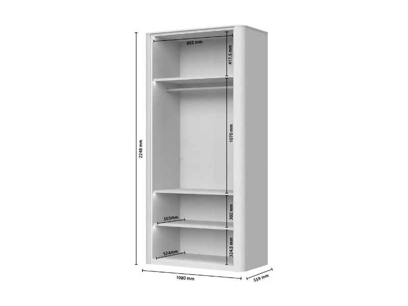 - Standard dulapul vine cu: 1 bara pentru umeras + 3 polite