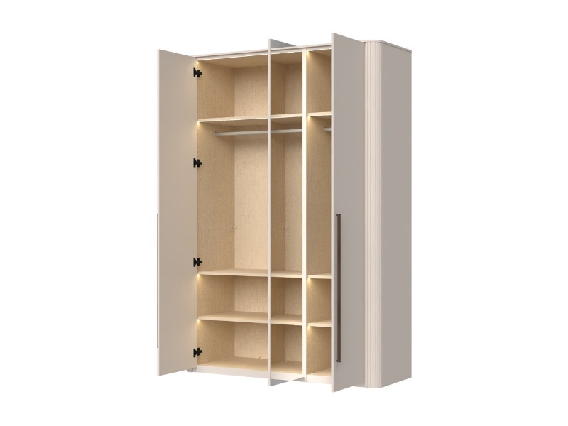 Dulap cu 3 usi cu balamale cu iluminare led RONDO 153x225x56cm casmir/ oglinda, manere Midnight Copper
